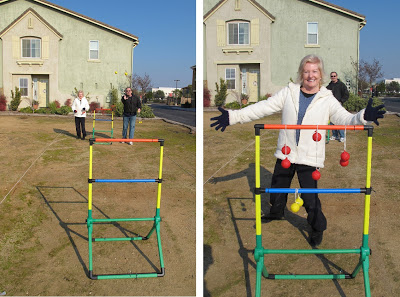 Ladder ball, mais um jogo de regras muito simples; consiste em arremessar 3 duplas de bolas amarradas e fazer com que aterrizem em algum degrau, cada degrau tem uma pontuação, a somatória final não poderá passar 21. Ganha o time que fechar 21 primeiro. O jogo nos surpreendeu, não imaginávamos que pudéssemos passar uma tarde tão divertida!