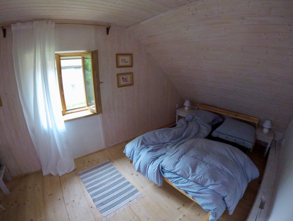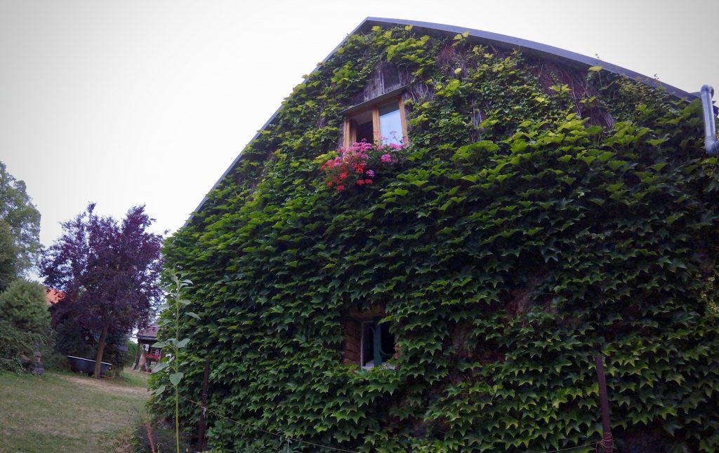 Exatamente onde parei o carro tinha uma pousada; um quarto no sótão todo charmoso num lindo jardim…