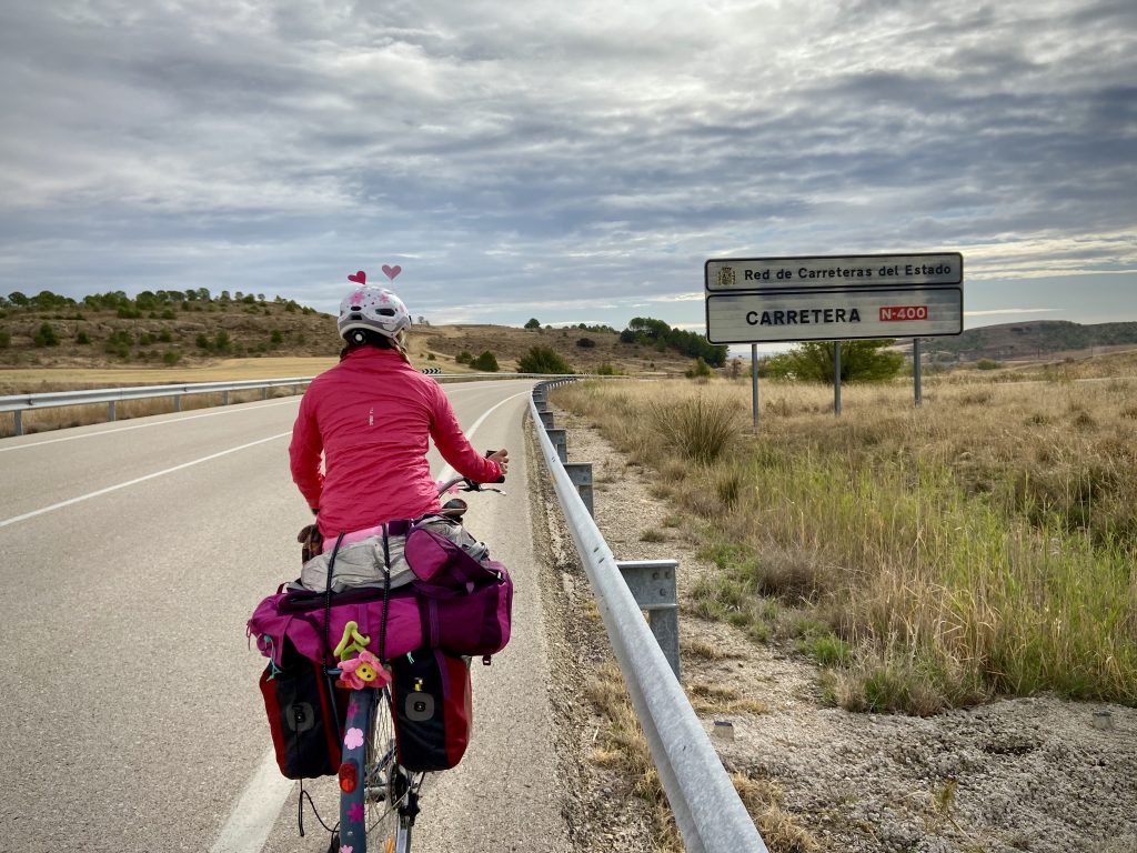 A estrada para chegar até Cuenca de bike é maravilhosa para pedalar; asfalto em ótimas condições, movimento de carros é zero (porque existe a auto estrada acompanha paralelamente). Foram 60 quilómetros numa “ecopista” só nossa, para dizer que não cruzamos com ninguém passamos por dois tratores.