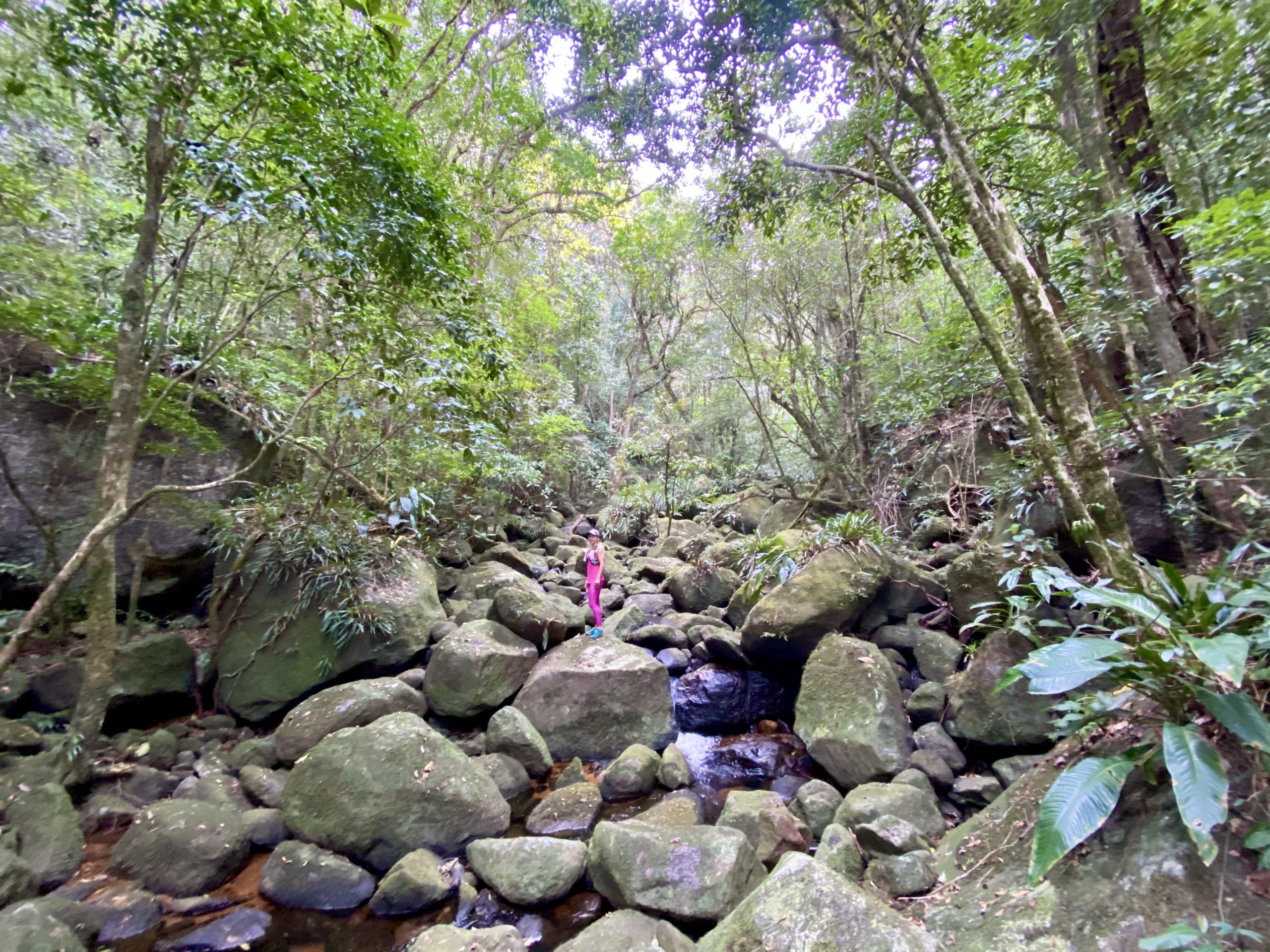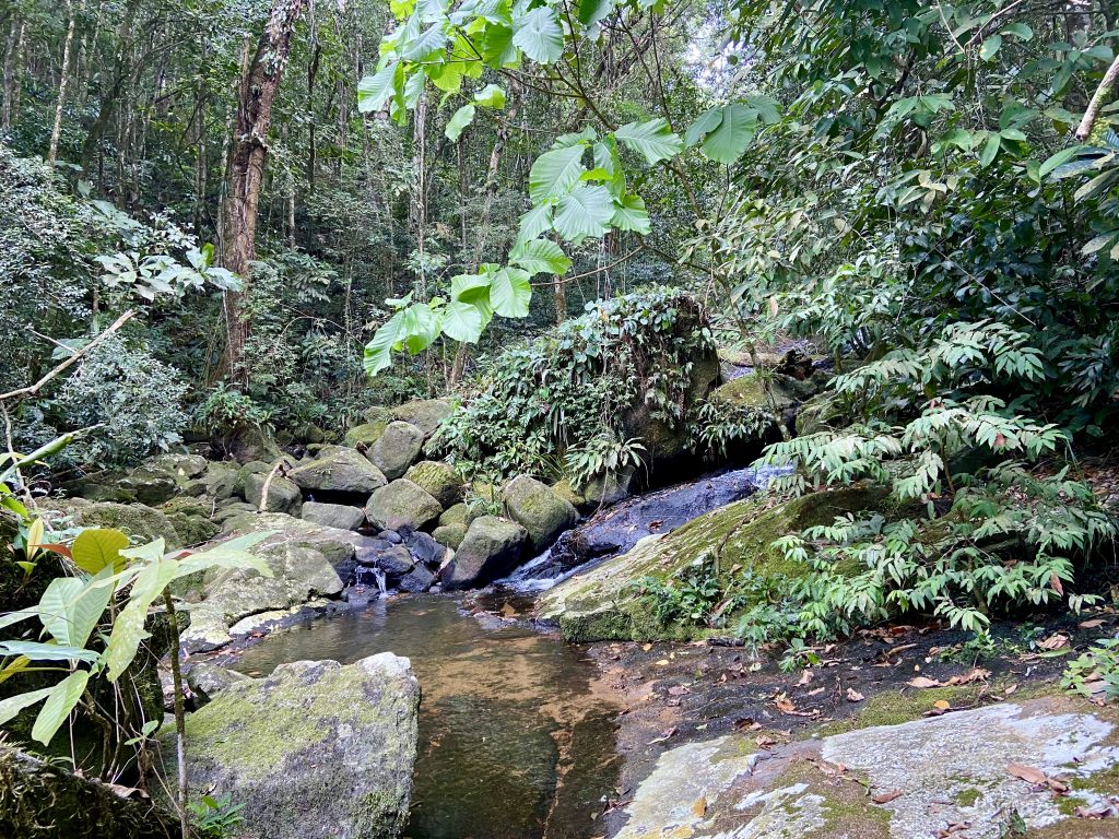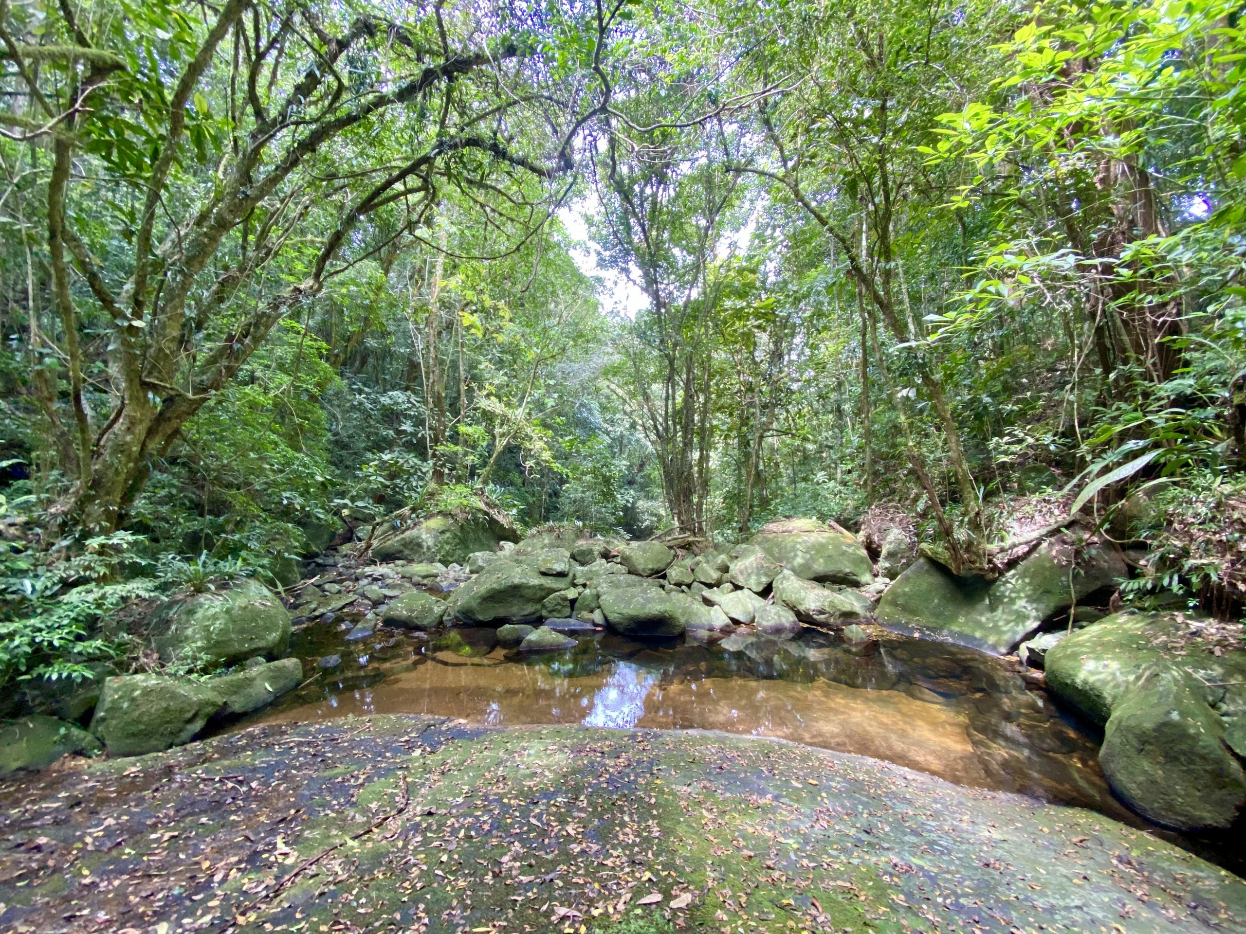 “Fácil! Uma hora e meia na mata com muitos trechos de subida de cachoeira por pedras escorregadias, chegaremos numa gruta muito doida.”