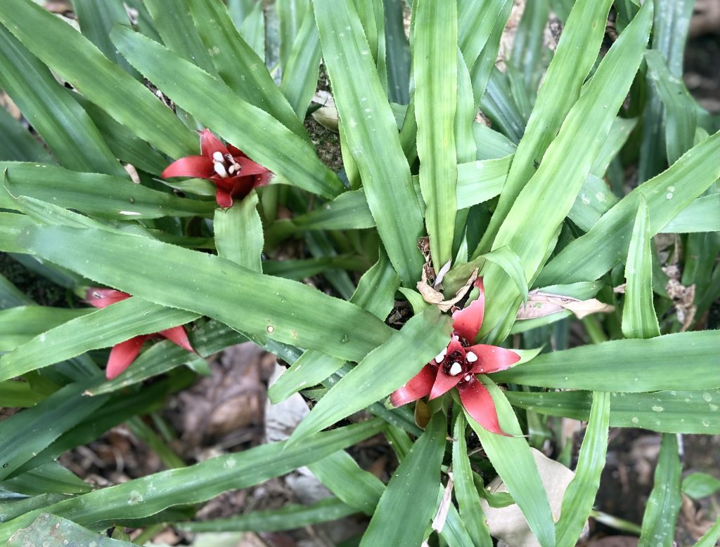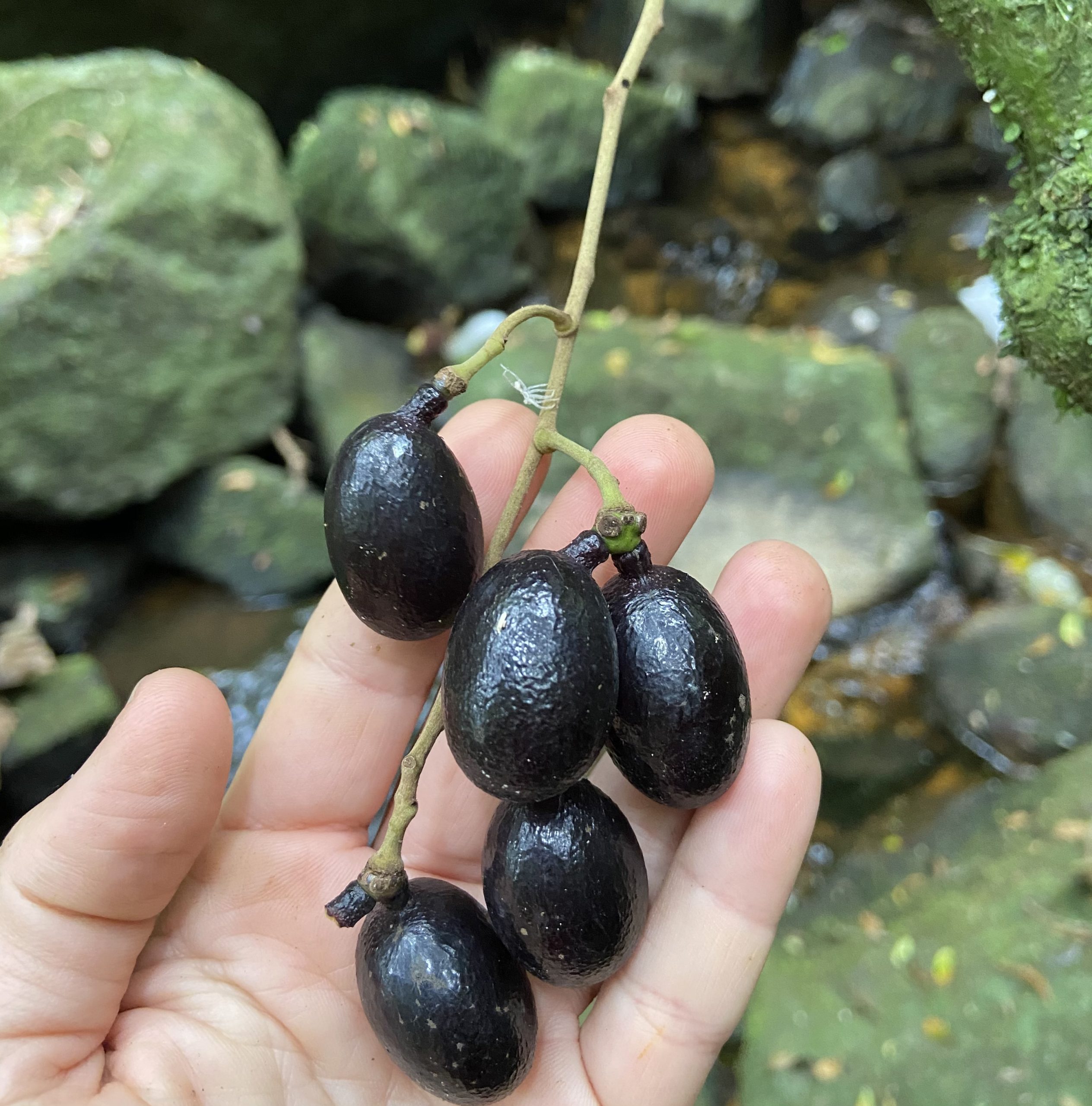 A biodiversidade encanta; vemos muitas bromélias e espécies variadas. Descobrimos Abuta, um cacho de fruto que curiosamente nasce do cipó.