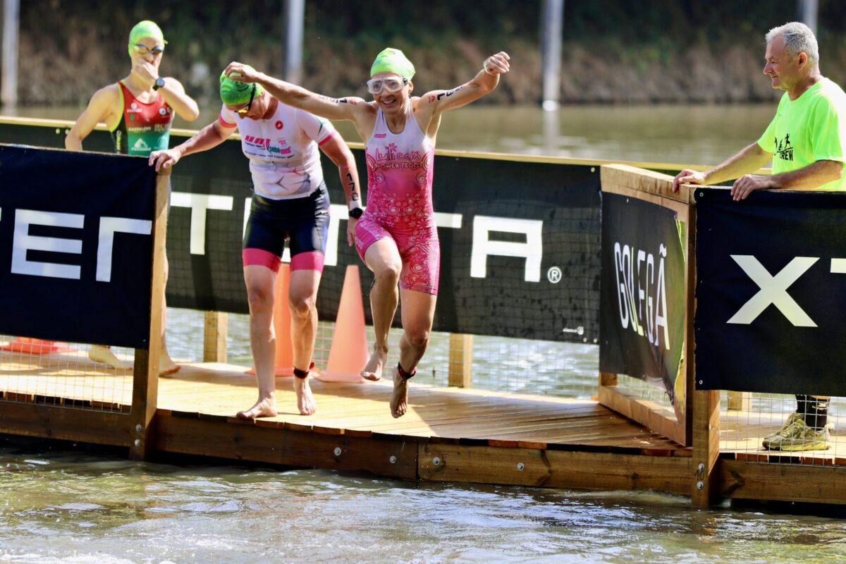 Eu tentando entender a sequência de bóias que teria que seguir, vem Susana, outra simpática atleta, se apresenta e me ajuda a desvendar o mistério. “Obrigada!”