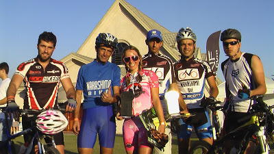 Pedalando forte em uma das retas fui ultrapassada pelo Tubarão, Alex e mais outro.