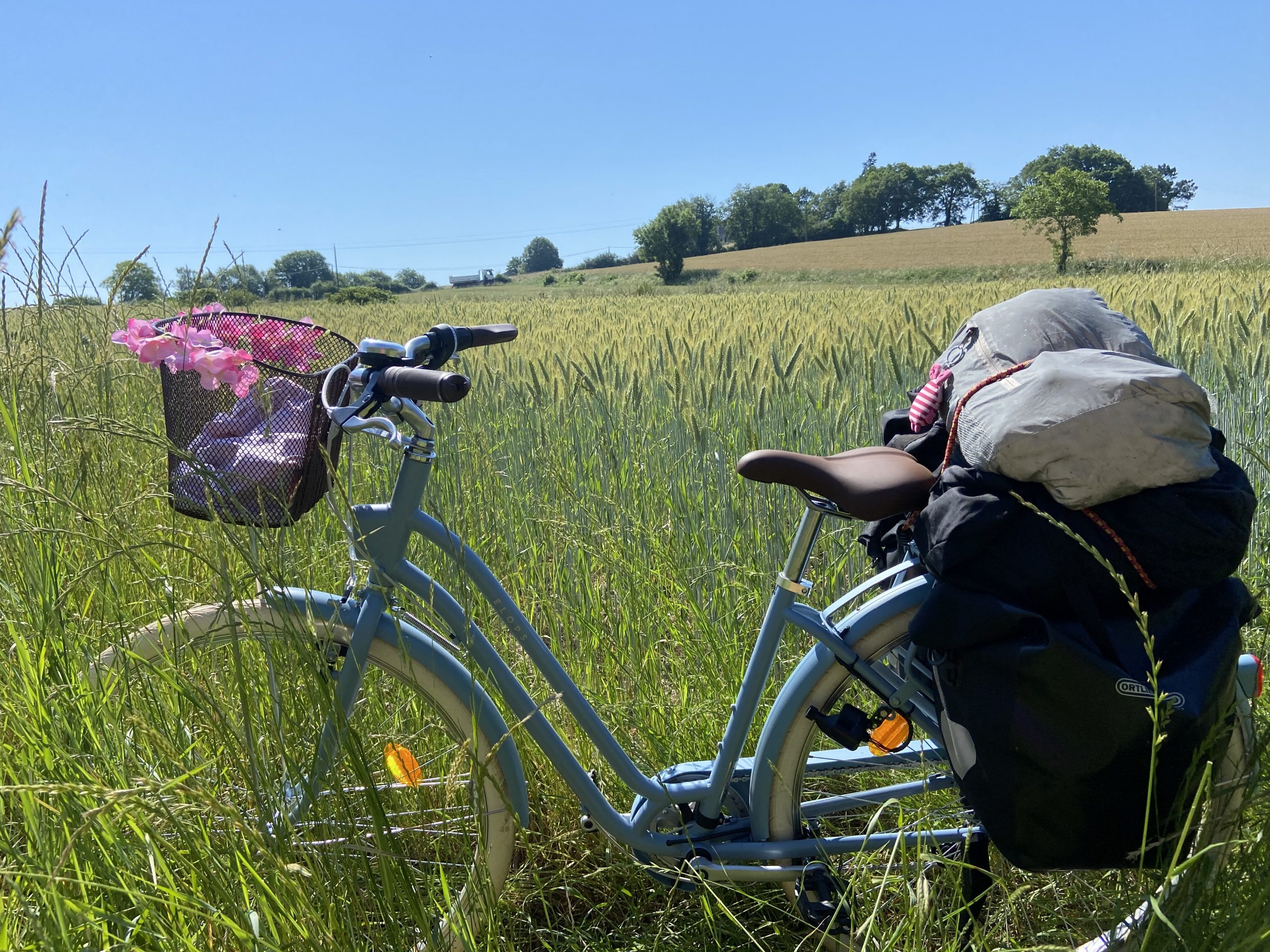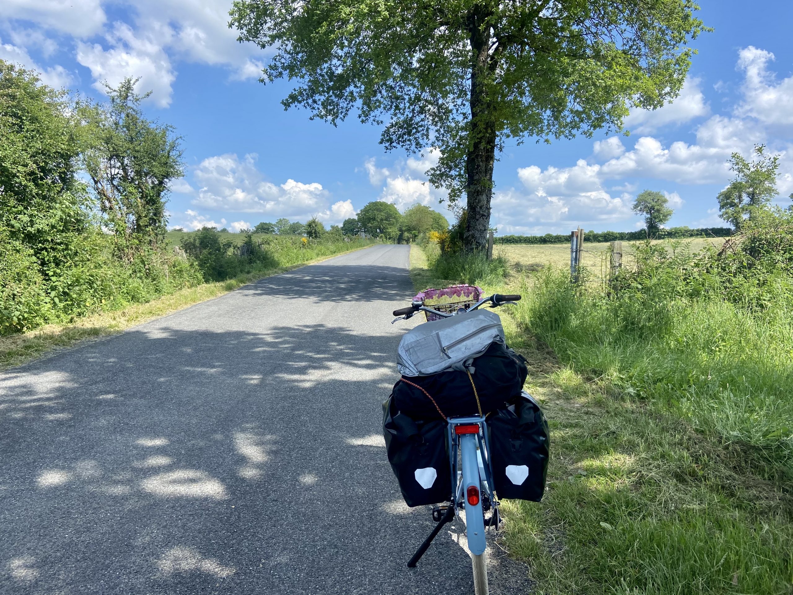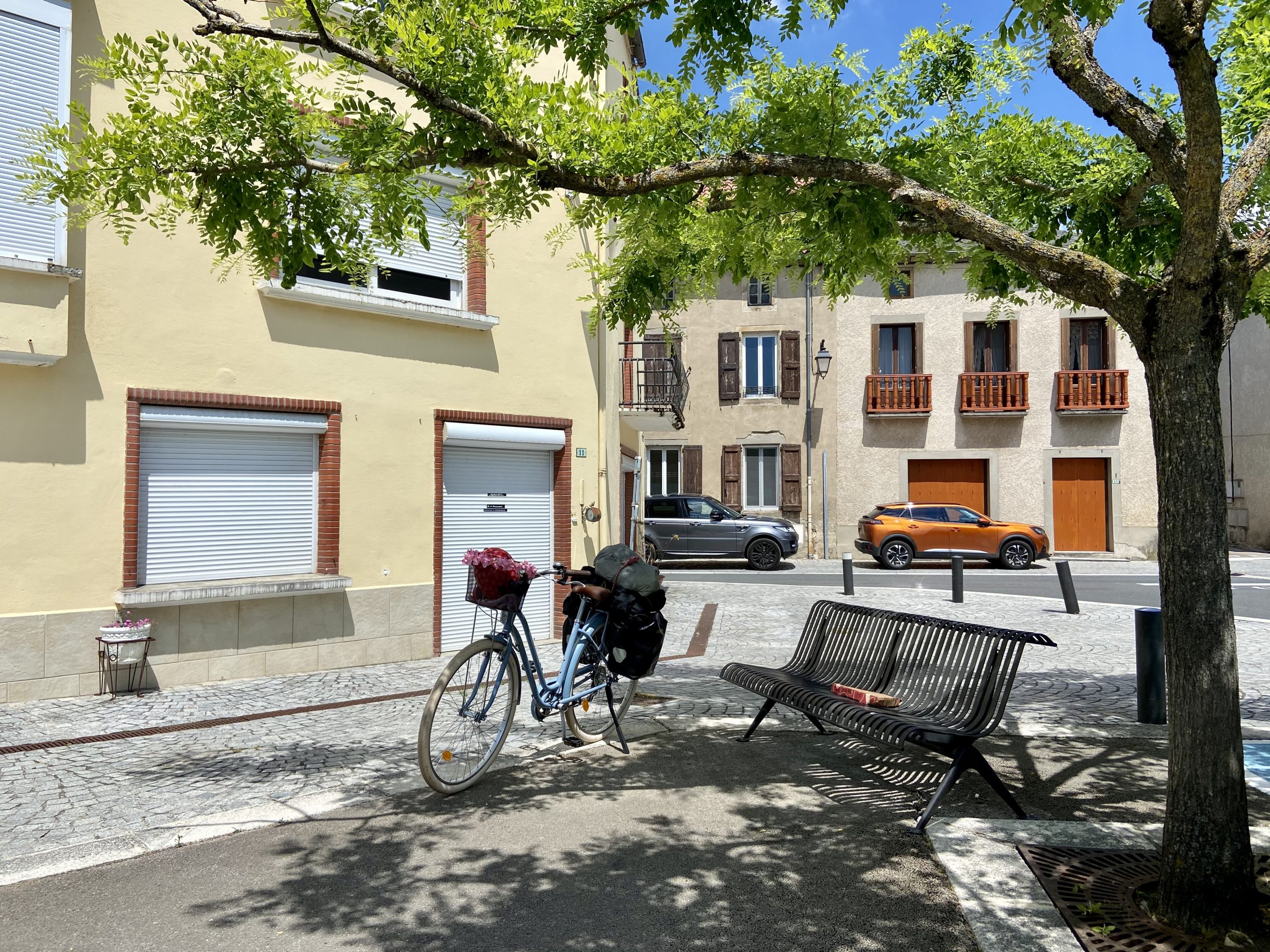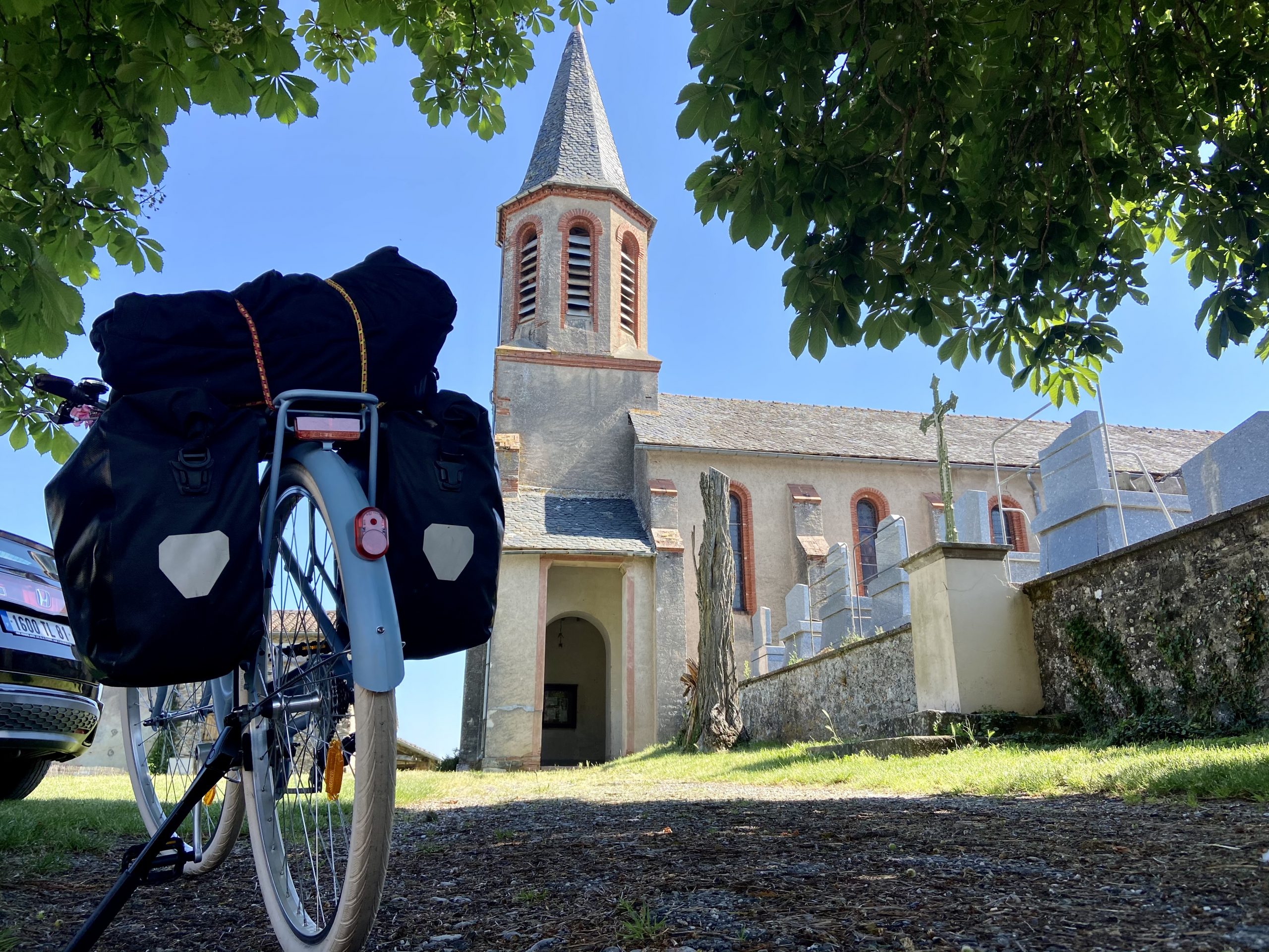 Quando passei num vilarejo, lá pelo meio dia, resolvi garantir meu segundo almoço pedi uma pizza veggie para viagem e sentei num banco de praça para repor mais energias. A pizza vinha com pedaços de batata cozida (oi?), pelo menos meu francês me salvou dos pimentões; “Sans poivrons!”