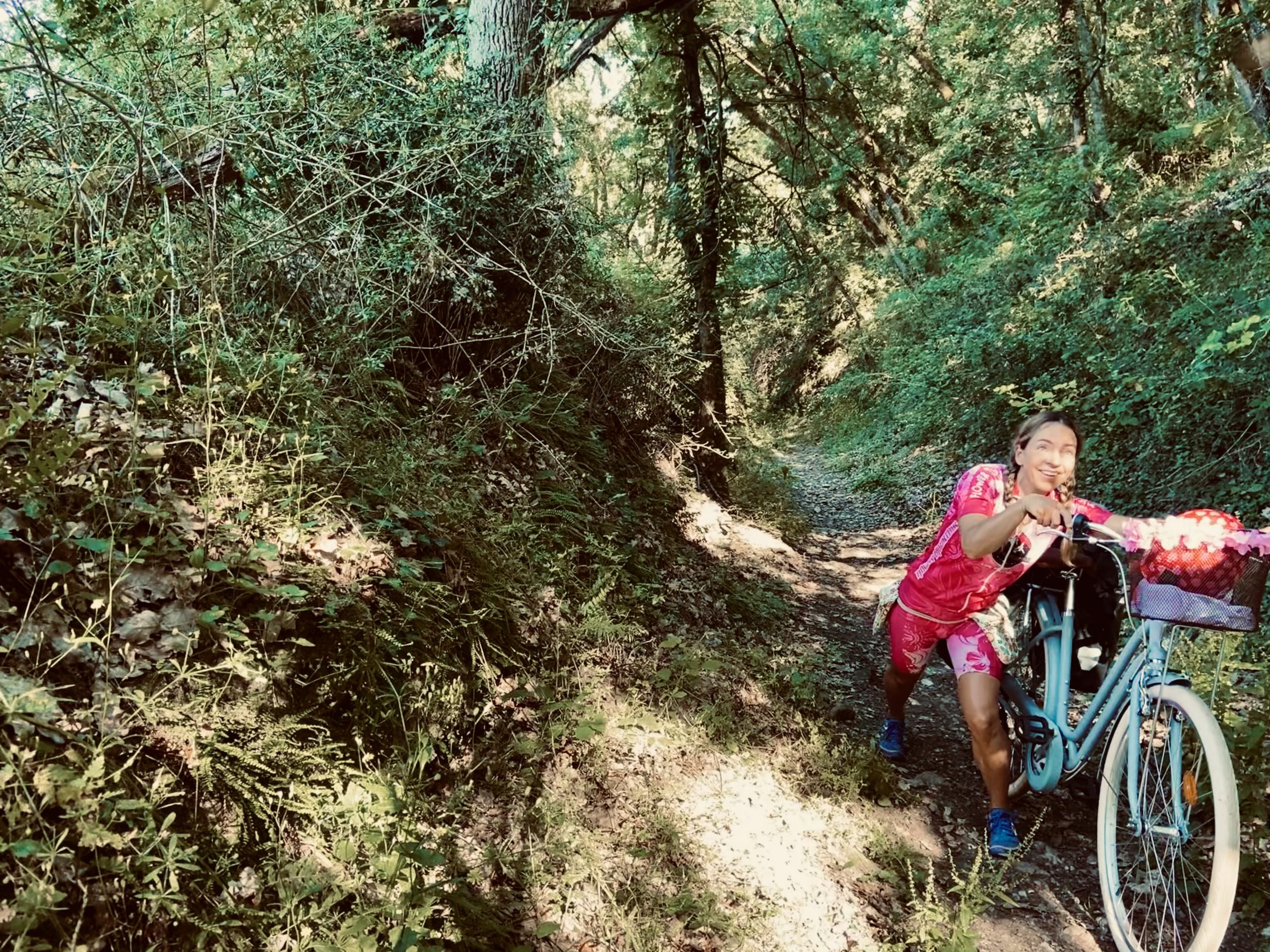 Me deparei com dois trail runners (imaginem bem o track que estava metida!) que deram risada ao me ver fazendo um esforço descomunal para empurrar a bike morro acima.