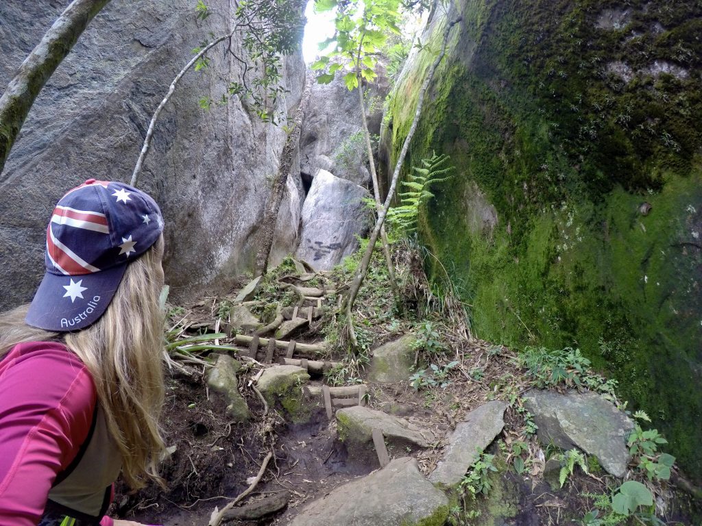 Depois de passar a base do Baú é quase mais um quilometro de trilha. Já começa a ficar mais desafiante mesmo antes de chegar a base da Ana Chata tem escaladas de pedra e obstáculos.