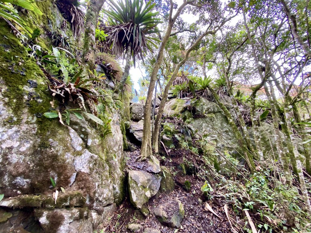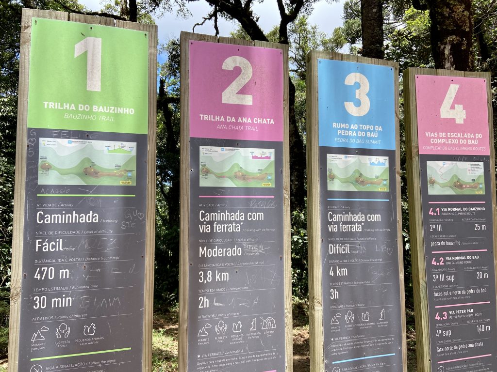 A trilha para lá percorre lateralmente toda a base sul da pedra do Baú, uma trilha com partes exigentes e bem variada no meio da mata.