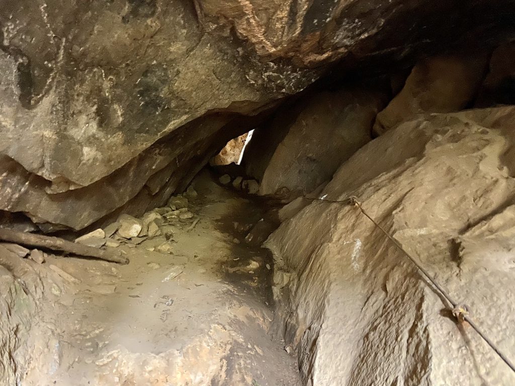 No percurso é possível ver a entrada boqueada e abandonada da subida da via ferrata sul.