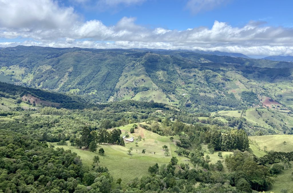 A vista de cima da Ana Chata é, para quem conhece as outras, menos bonita. Não que ela não seja, mas olhando de lá a Pedra do Bau fica mais afastada. Os dois vales são sempre visíveis de todas as três; Bauzinho, Baú e Ana Chata; vista verde com uma cadeia interminável de morros e montanhas no horizonte.