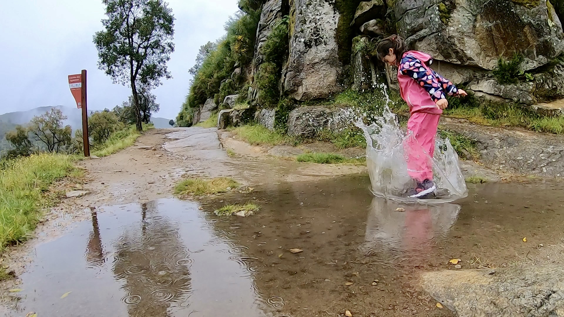 Sabendo que íamos para uma aventura, as meninas torciam para que chovesse ainda mais. Eu só ficava imaginando a travessia da Ponte em meio ao nevoeiro fechado. Raios!