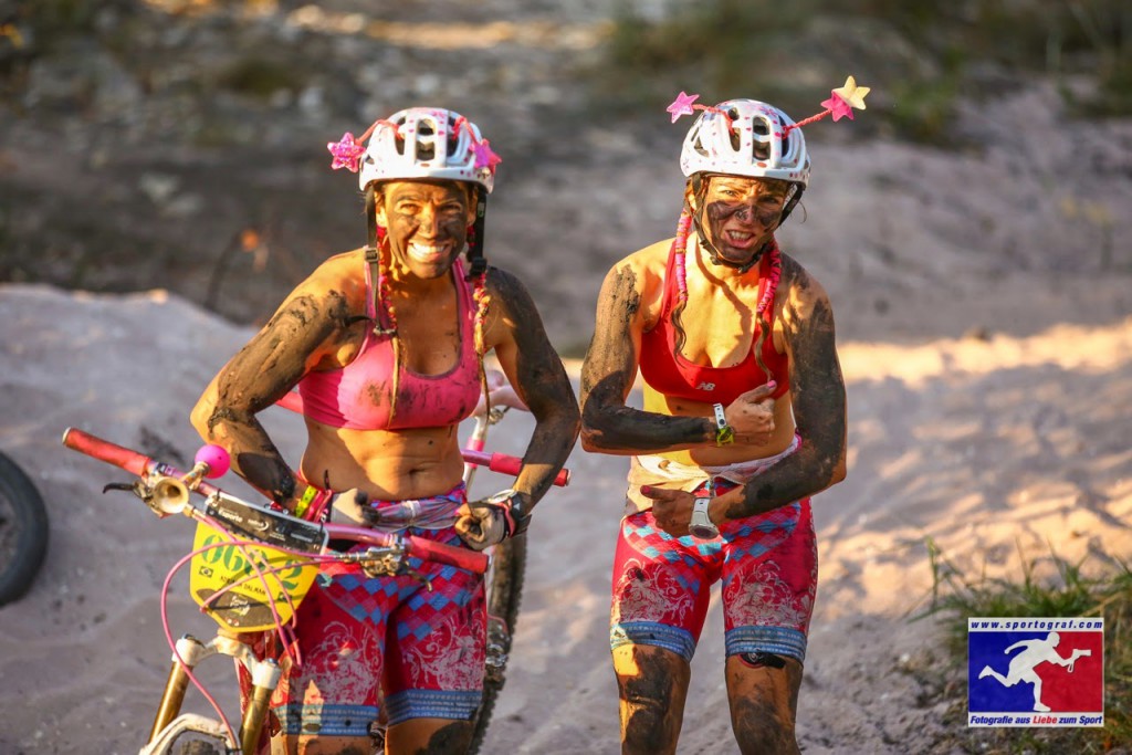 A velocidade média caia, e pelos cálculos passar o corte do ponto de água 4 era uma realidade cada vez mais distante. Os perrengues divertem a gente, seguimos assim dando risada e nos achando as combatentes até nos transformamos em duas verdadeiras “soldadas” de guerra. Na parte de lama nossa camuflagem ficou completa. As brincadeiras nos fizeram esquecer as vezes que tívemos que deitar no chão e esperar uma melhora do nosso organismo. O termômetros atingiram 50 graus.