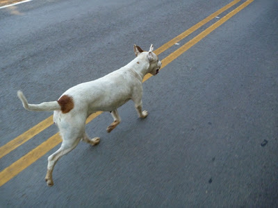 Fizemos amizade com uma cachorrinha que depois da nossa parada resolveu nos seguir. Todo cachorro que se aproximasse nossa nova amiga fiel já ficava brava. Eu comecei a ficar preocupada porque estávamos nos afastando muito da cidade e ela continuava junto. Paramos e tentamos manda-la de volta. Nada.