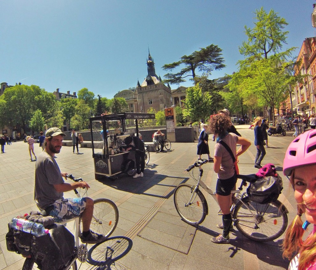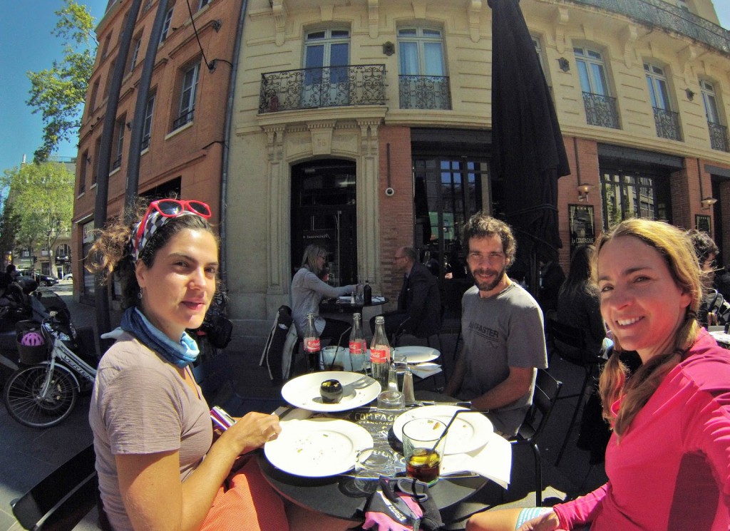 Paramos em Toulouse para almoçar, deixando o Canal du Midi para trás. Almoço gostoso em restaurante movimentado no centro da cidade. É até estranho chegar em cidade “grande” depois de dias em vilarejos que nada abre de domingo a quarta.