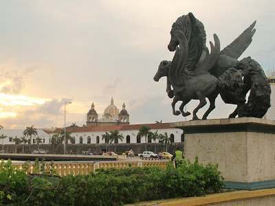 No primeiro dia de Cartagena fomos explorar o novo território. Cartagena é uma cidade do litoral colombiano considerada patrimônio histórico da Humanidade pela Unesco. O centro velho e a cidade murada encantam pela arquitetura viva, casebres coloridos e varandas esculpidas e floridas.