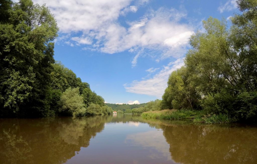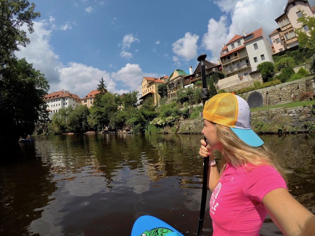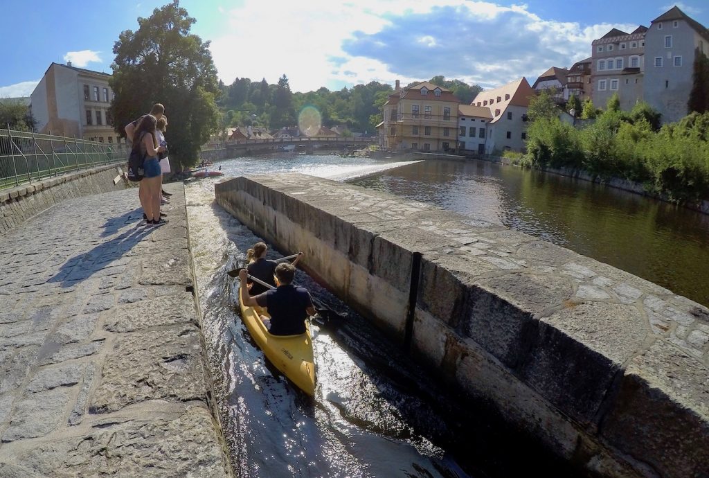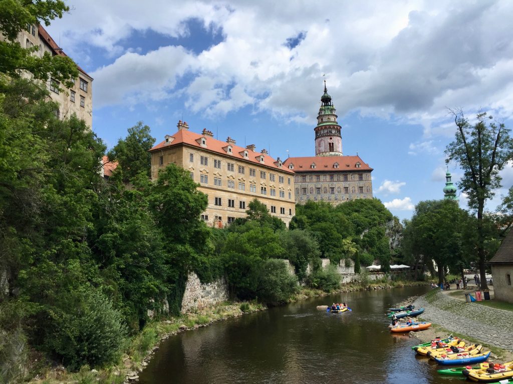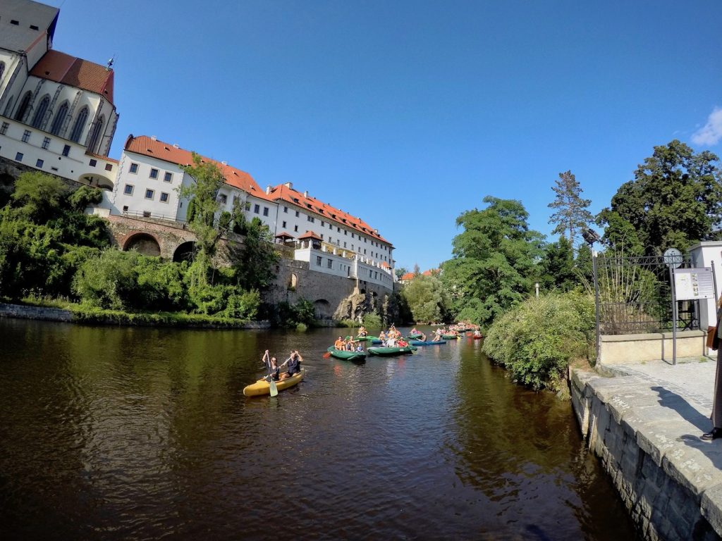 Beirando o rio Moldava, ou Vltava (em checo) encontrei um percurso pitoresco sem pessoas e com vistas realmente de tirar o fôlego. Quando cheguei à margem fiquei impressionada com a quantidade de caiaques, botes e pessoas que remavam; não é pra menos, o rio faz um sinuoso S pela cidade tornando o passeio pela água 360 graus bonito.