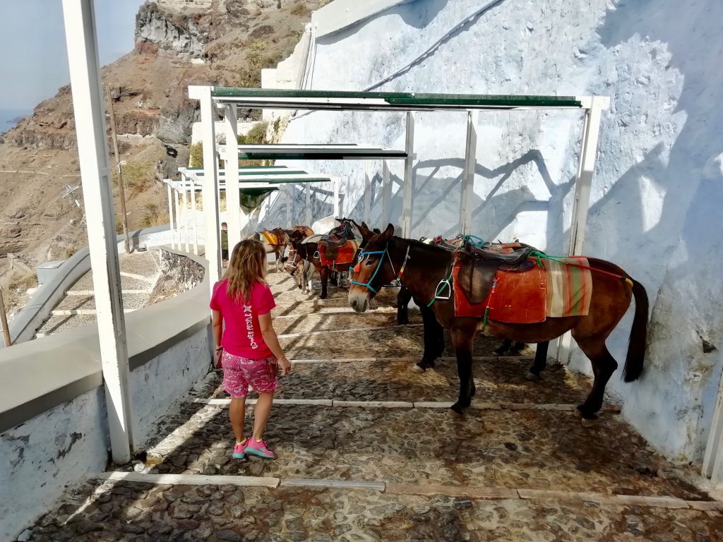 Chegando em Thira, a capital da ilha, vimos que era possível descer por uma interminável escadaria até o porto antigo.