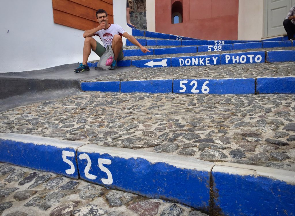 Os gregos tentam te convencer que talvez seja melhor pegar o transporte oficial da pirambeira. A gente queria era conquistar o mar para depois fazer meia volta e encarar a escadaria subindo.