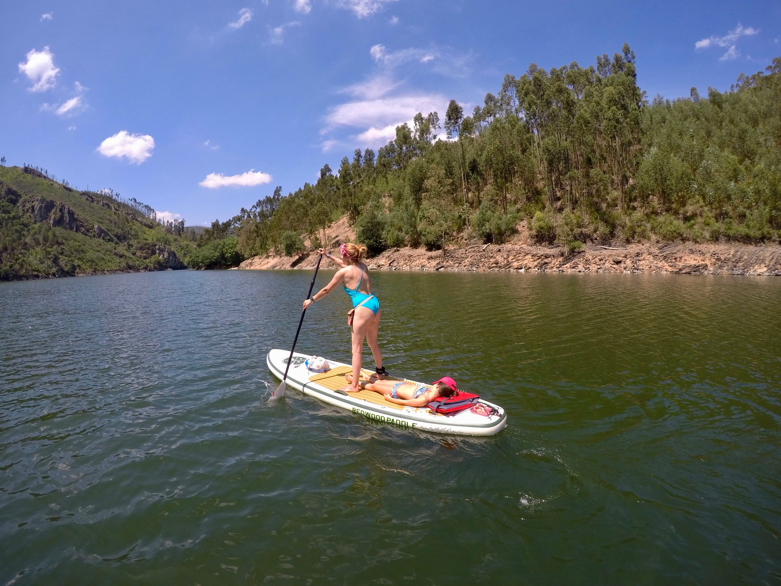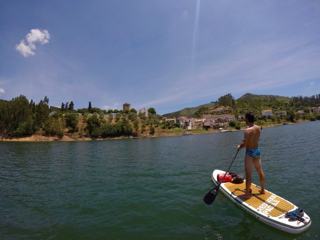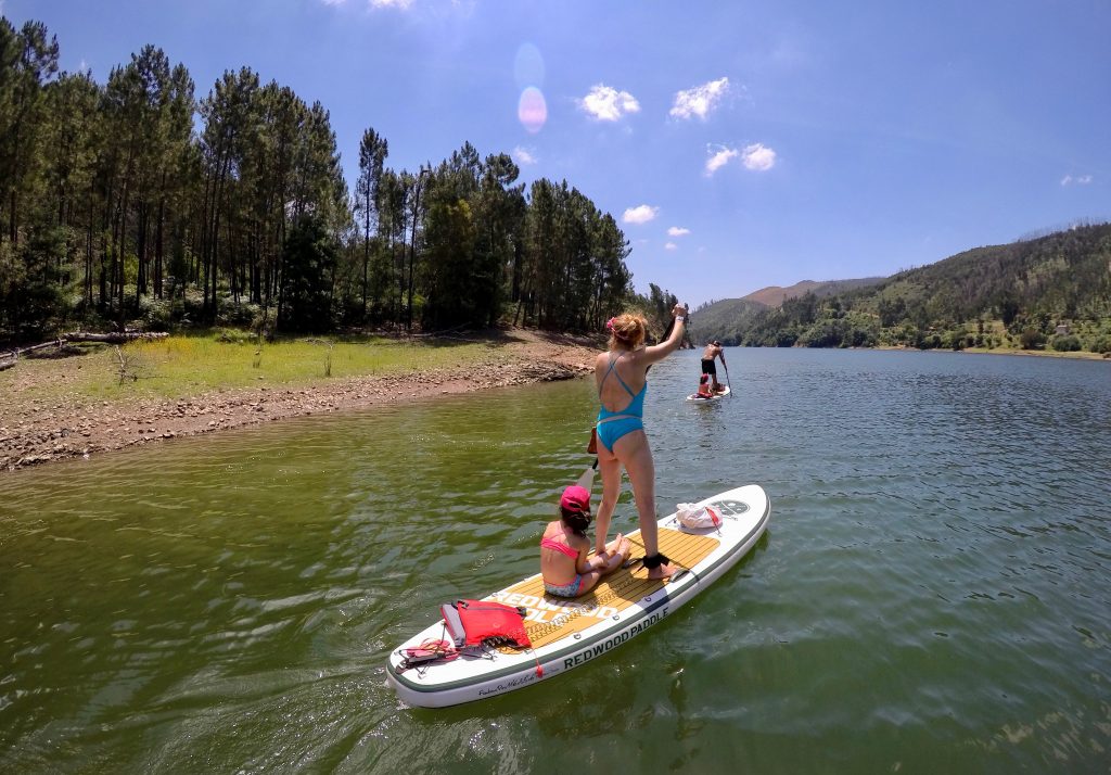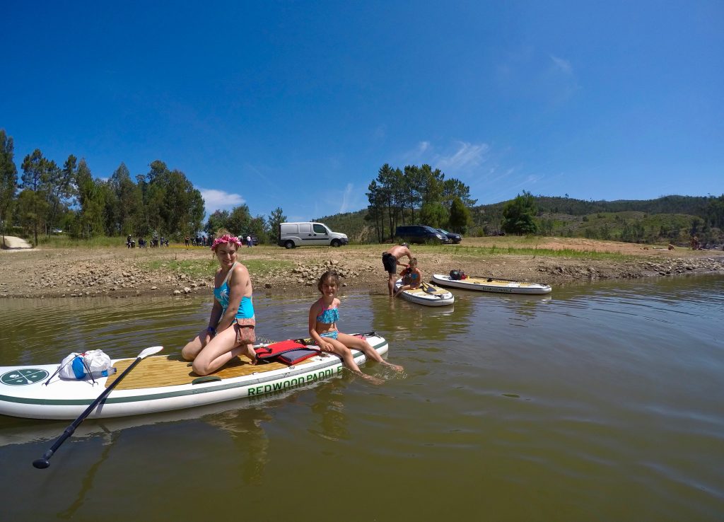 O rio Zezere encanta com seus tons, às vezes verdes às vezes azuis numa mistura constante de tons e cores, encanta! As meninas estão super adaptadas às expedições em cima da prancha e vão se entretendo com o entorno e amigos, outrora até tiram um cochilo.