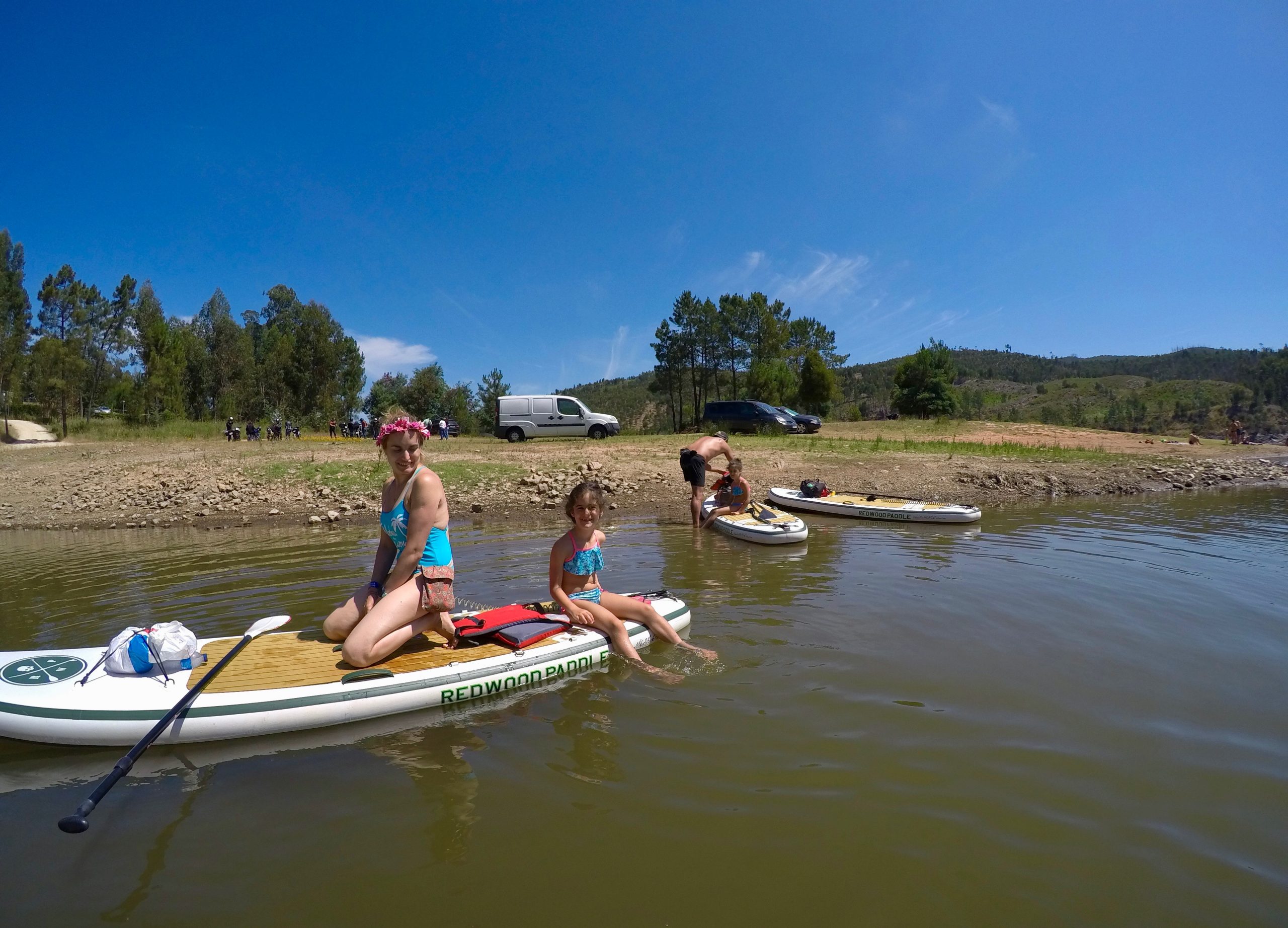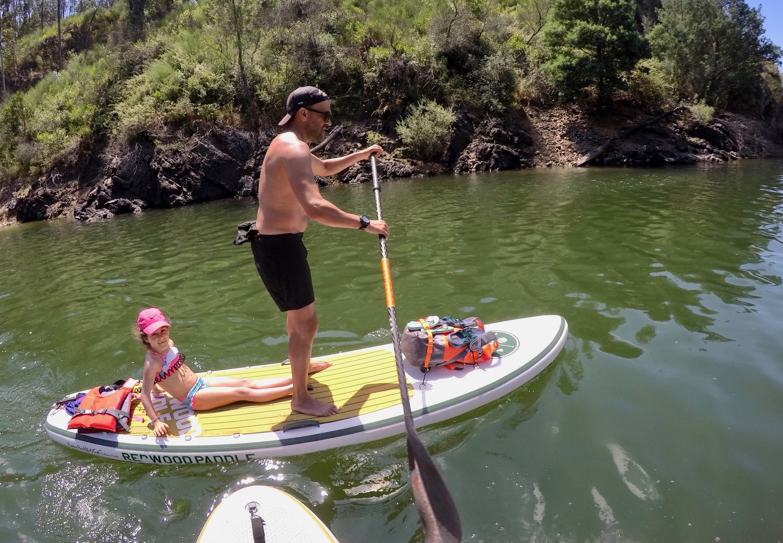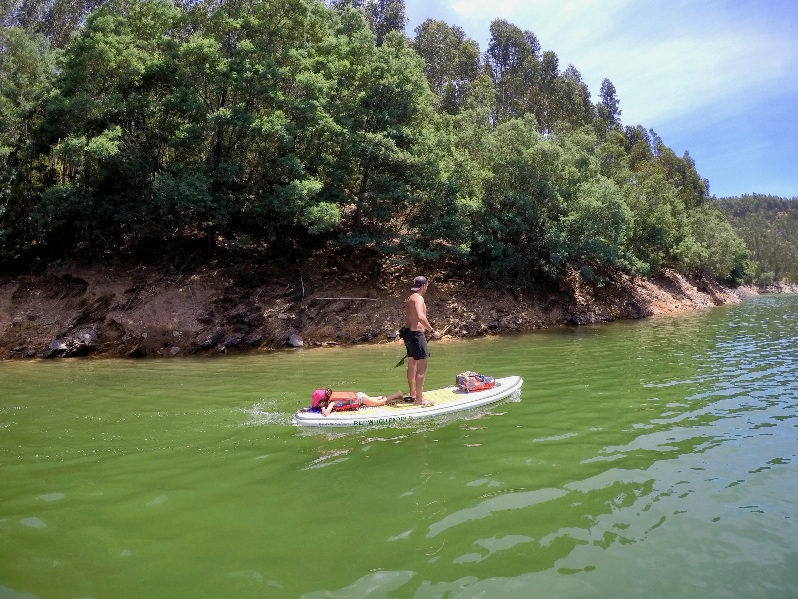O rio Zezere encanta com seus tons, às vezes verdes às vezes azuis numa mistura constante de tons e cores, encanta! As meninas estão super adaptadas às expedições em cima da prancha e vão se entretendo com o entorno e amigos, outrora até tiram um cochilo.