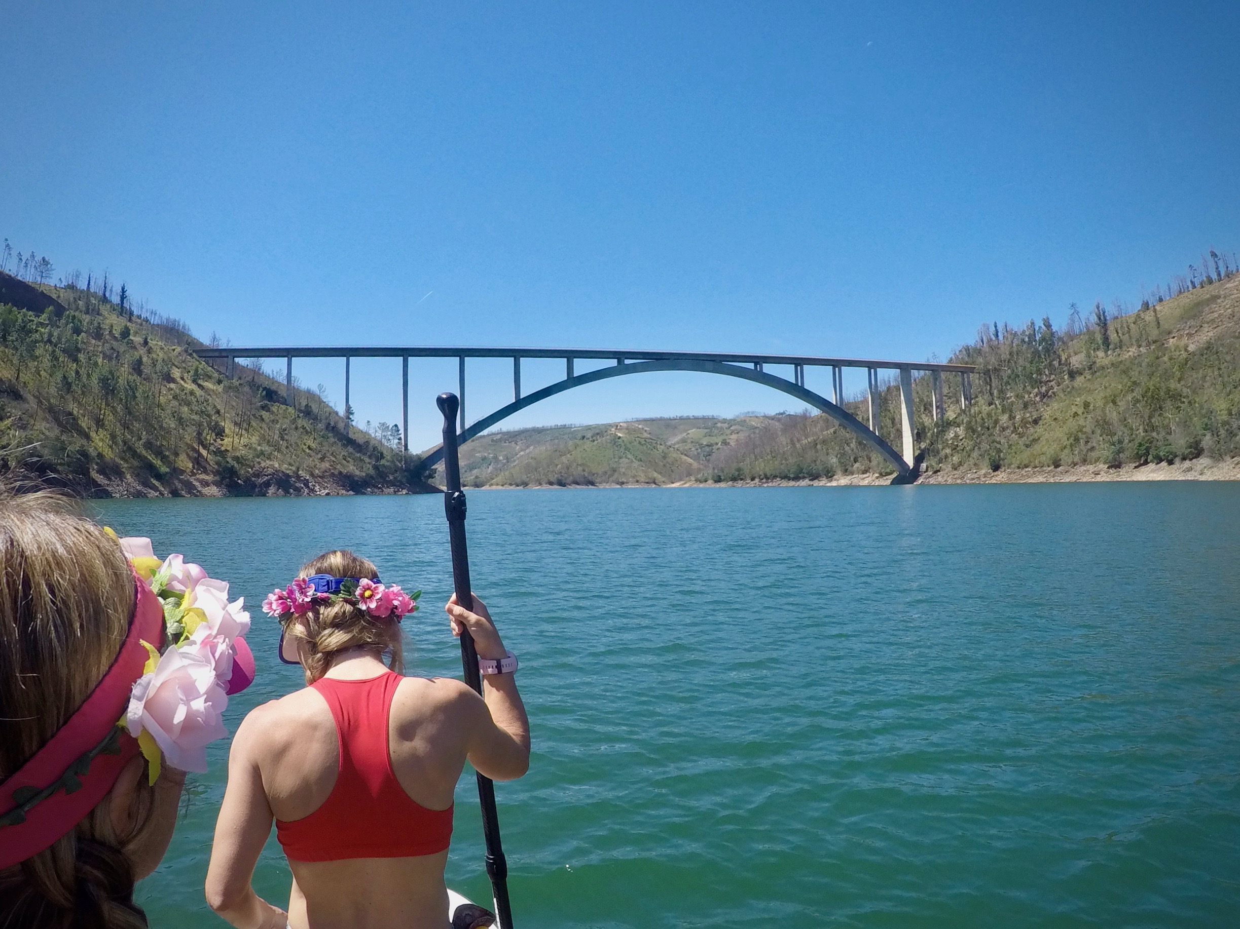Apesar da prancha não ser especificamente uma tandem, ela tem se comportado muito bem com o peso de nós duas e de nossa pouca bagagem.