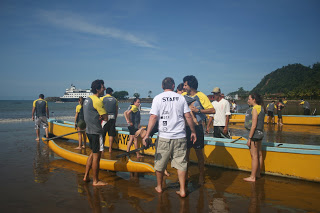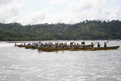 Um dia ensolarado amanheceu! A primeira prova do dia; canoa havaiana! Na praia do Hotel.