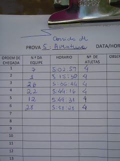 Em nome das mães que estão acompanhando o blog e querendo notícias dos seus queridos. Essas foram as primeiras seis equipes que completaram a prova.