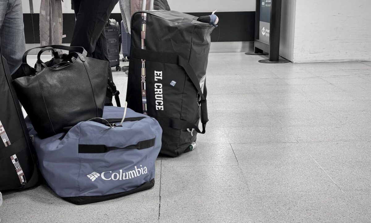 Tudo que levaremos para correr os três dias e acampar duas noites, deverá estar dentro de uma mala de no máximo 120 l (se você quiser eles tem mala para comprar) No passado eles davam as malas, hoje ela é preciso trazer. Sorte que, sem querer, eu tinha levado uma do tamanho certo e com rodinhas. (Chegar depois de correr 30k e carregar a mala não é nada fácil).