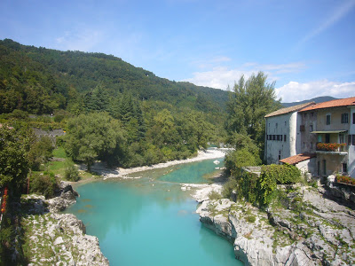 A dica não poderia ter sido mais linda. Praticamente os nossos 130 km do dia foram beirando o rico rio Soca. A cor dele nos deixava hipnotizados!