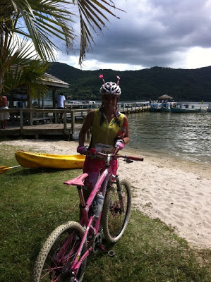 Saímos do remo e a Dri saiu para o trecho de 14 km de bike.