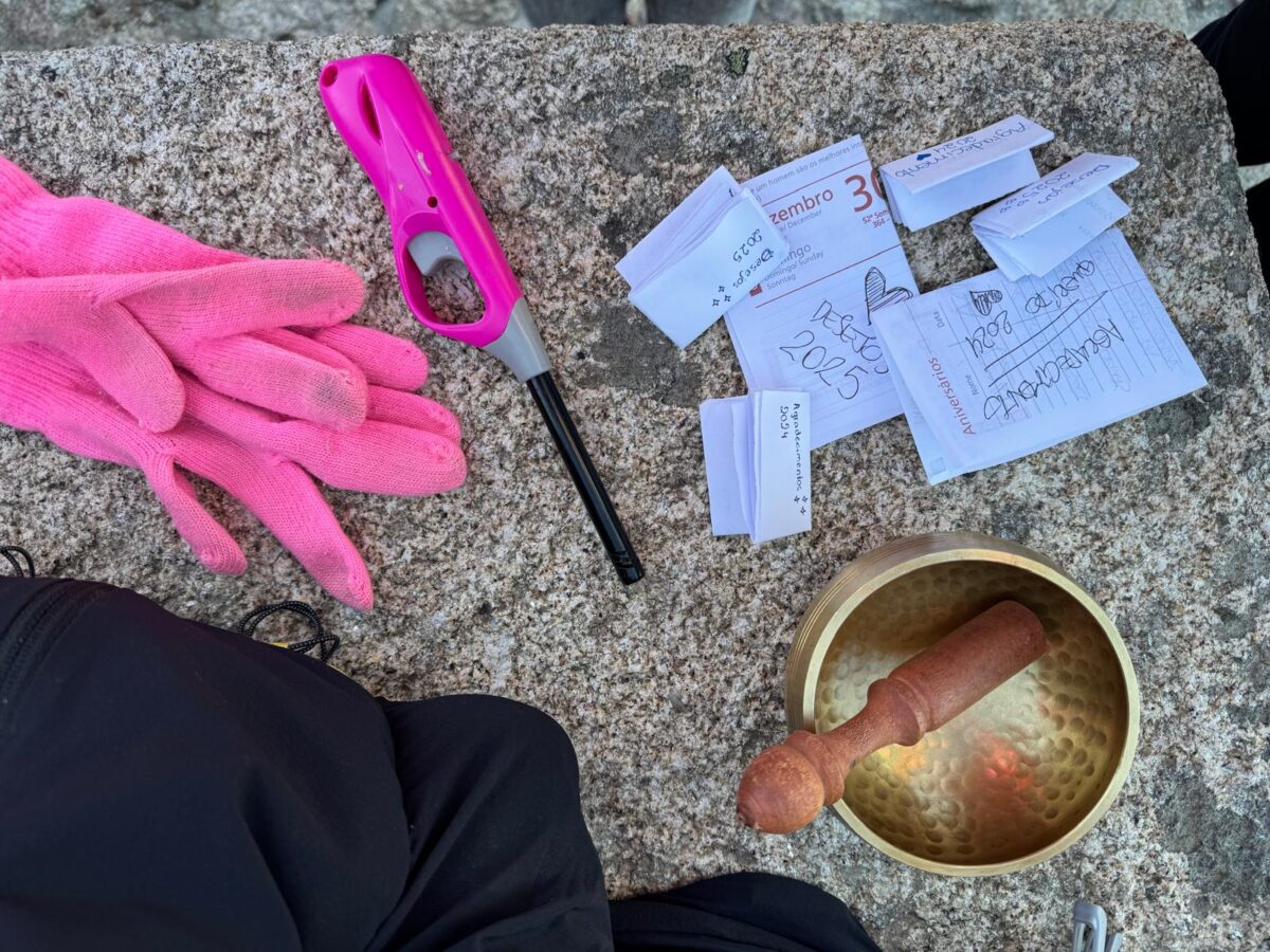 Seguindo nosso ritual cada um tinha que colocar seu agradecimento  no bowl tibetano e dar doze voltas sonoras nele. Depois de todos os agradecimentos devidamente abençoado queimaríamos eles para que a fumaça levasse nossa prece aos céus.