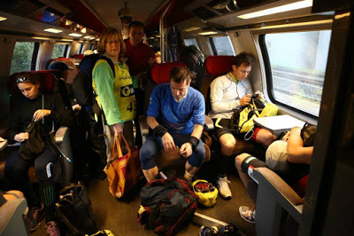 Eu tinha que pegar um trem para a largada as 5.59 h ainda tinha que separar comida me arrumar e correr até a estação.