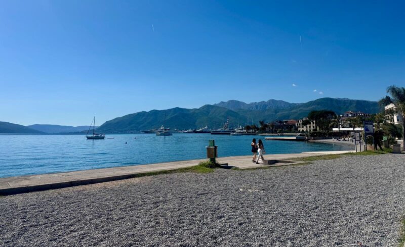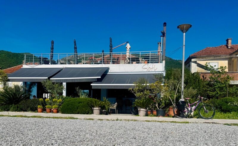 O caminho passa por Tivat, que já é na outra alça da baía. Quando estou por perto mudo o track para ir atrás de mais um sorvete. Faço a pesquisa Moritz Eis, aí descubro onde estava por aqui. Assim dpesquiso todos os lugares que tem o sorvete aqui em Montenegro e faço disso meu destino de viagem. Não é uma boa ideia?