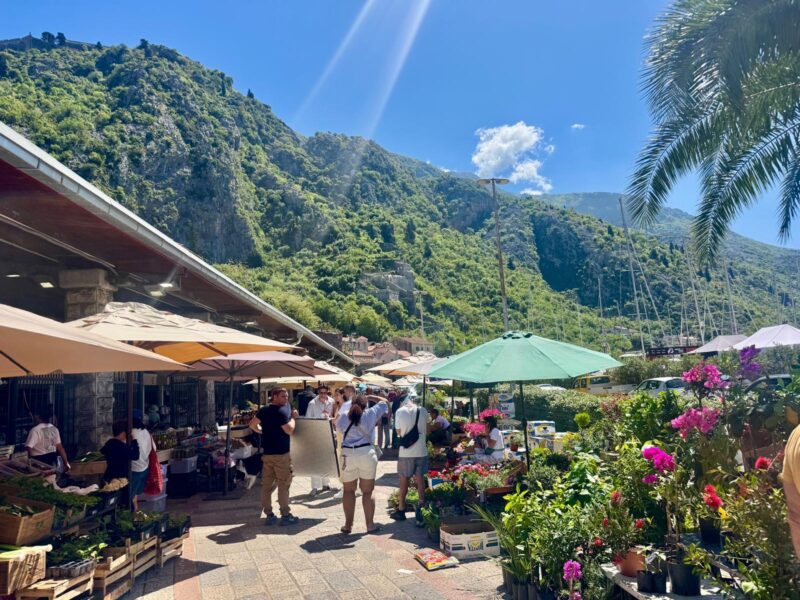 Logo saindo de Kotor, tinha uma feira. Sábado, dia de feira! Produtos naturais.