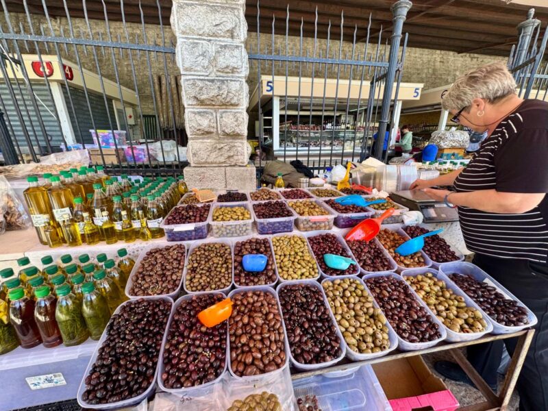 Resolvo parar e adivinha quem eu encontro? As azeitonas. Croácia e Montenegro tem azeitonas excelentes, daquelas muito saborosas. Eu sei Portugal que me desculpe, mas as azeitonas daqui, pra mim são as melhores do mundo. Só de olhar o jeitão eu já sei qual vai me fazer feliz. Acertei na mosca, e depois claro, me arrependi de não ter comprado mais!