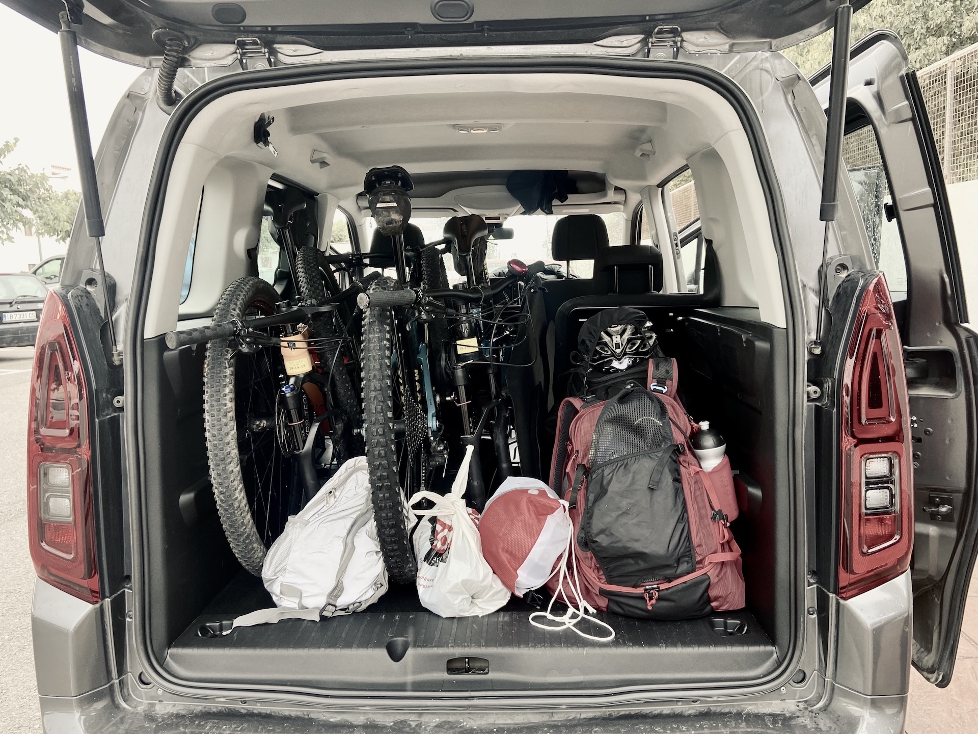 Depois de fazer mágica para colocar tudo dentro do carro, ir até o outro lado deixar o carro em Fornels, onde será a chegada da etapa de amanhã. Não termina por aqui; pegamos as bikes e pedalamos 30 quilômetros. Oi?! 30 quilómetros?