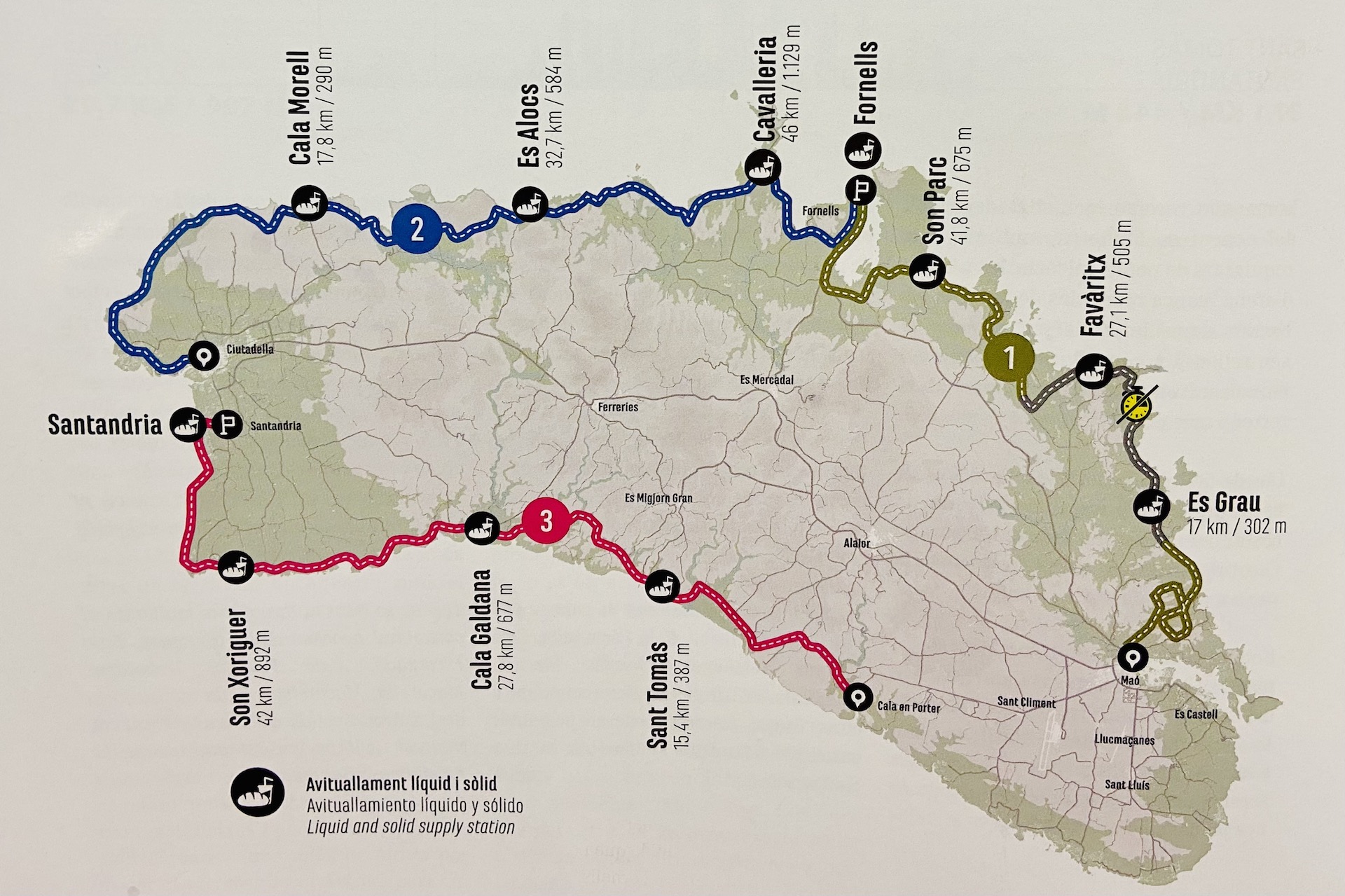 A Camí de Cavals 360, como diz o nome, dá a volta na ilha de Menorca. A logística da competição não é muito fácil, porque as largadas e chegadas são sempre em locais diferentes. A organização oferece um pacote com transfers de bikes etc, mas nós achamos que nosso plano é sempre melhor, mesmo que ele não exista.