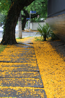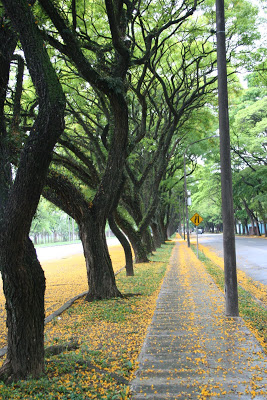 Sim! Estamos na primavera, as Cassias derramam suas flores, colorindo o asfalto.