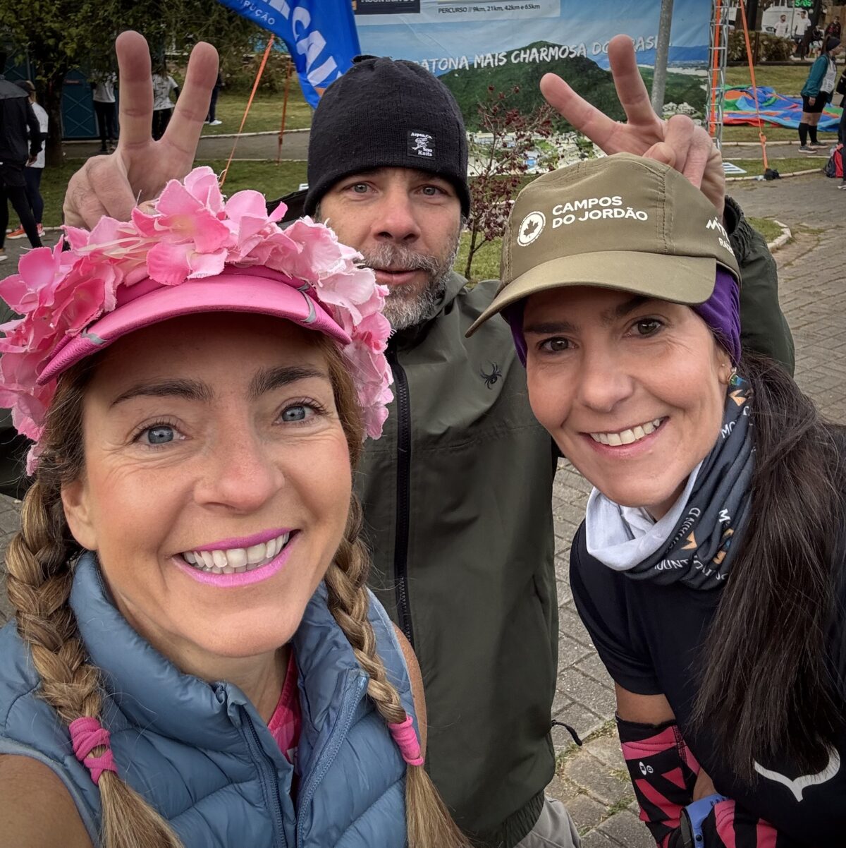 Com um frio de sete graus alinhamos para largada junto com nossos novos amigos de corrida; Júlia, Cleu, Daniel e com corredores de todas as distâncias.