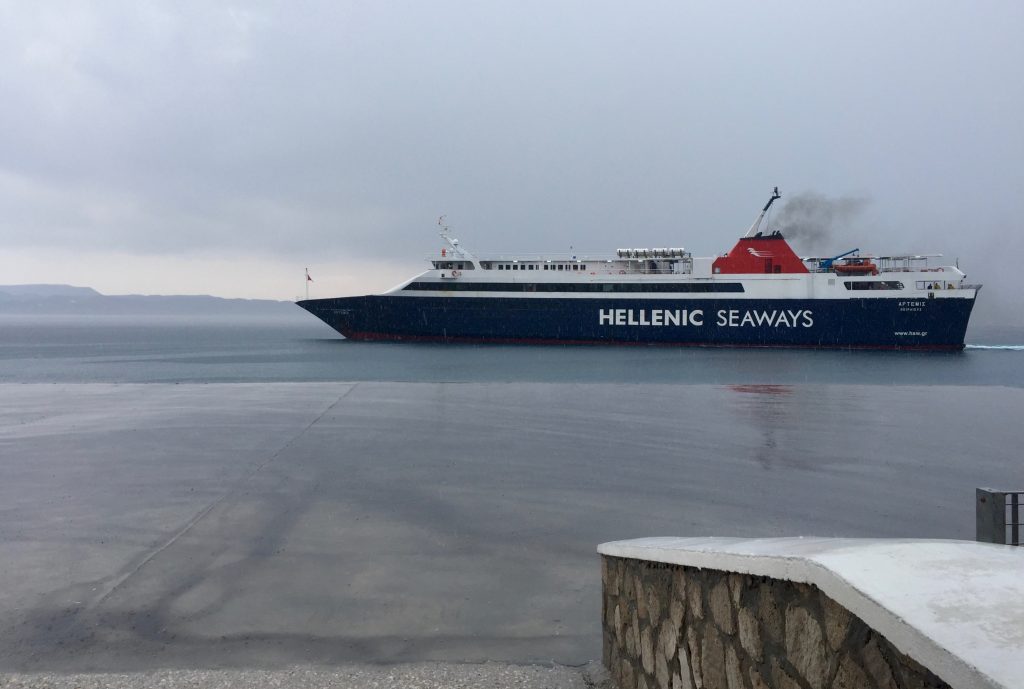 O dia chuvoso era ótimo para a nossa viagem de barco. Depois do almoço Souvlaki, a comida tradicional grega que a gente ja incorporou no nosso every day menu, entramos no navio para trocar de ilha.