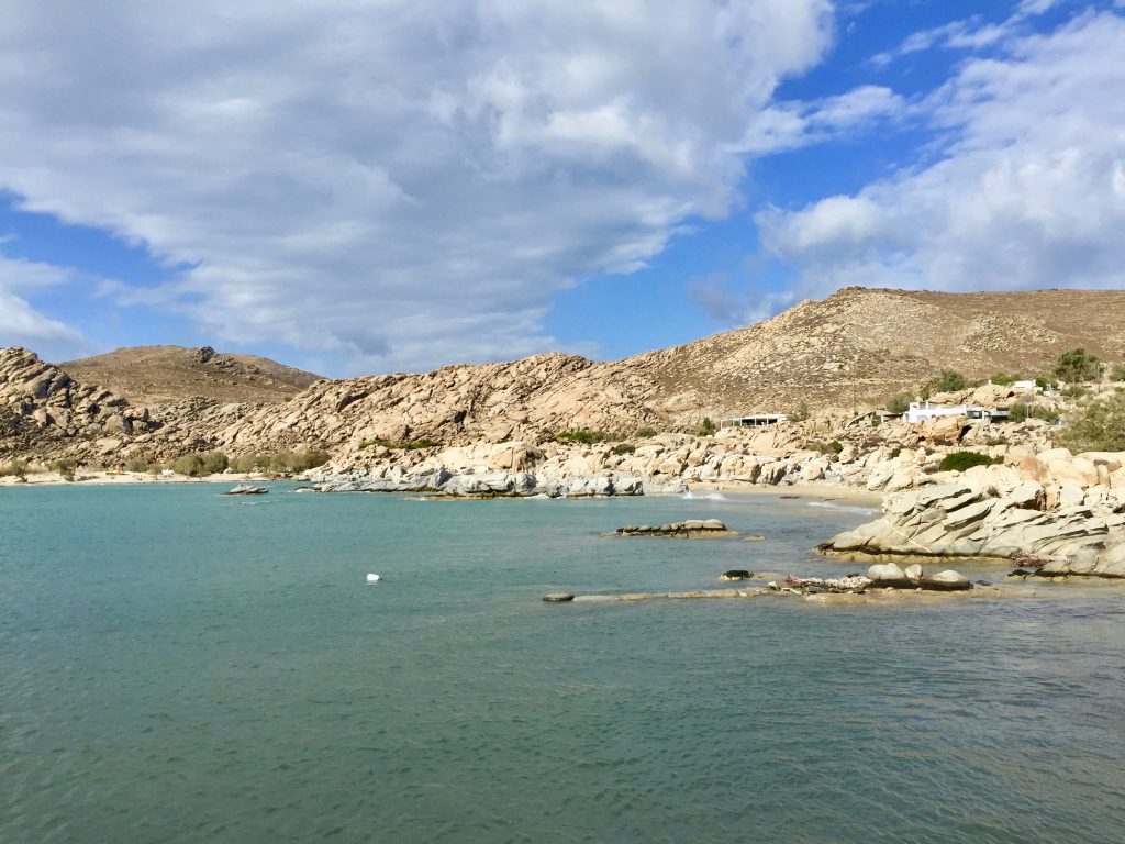 A previsão era vento. Tanto que a gente ate cogitou mudar o programa, mas a ilha nos chamava. Primeiro destino do dia foi totalmente contra o vento ate a ponta onde esta Naousa. A cor do mar sempre impressiona, os dias passam e não nos acostumamos com a beleza das praias.