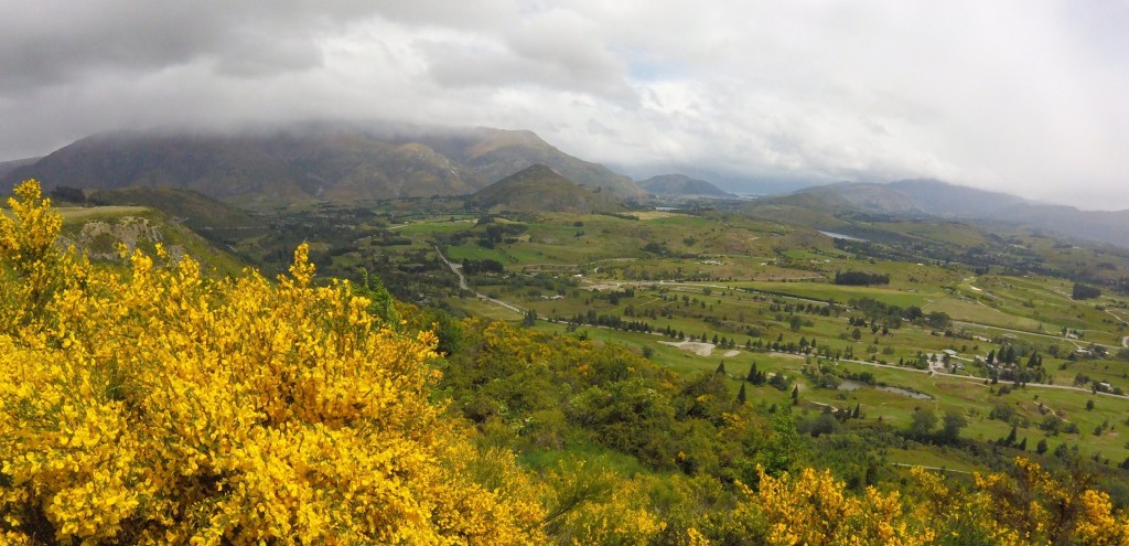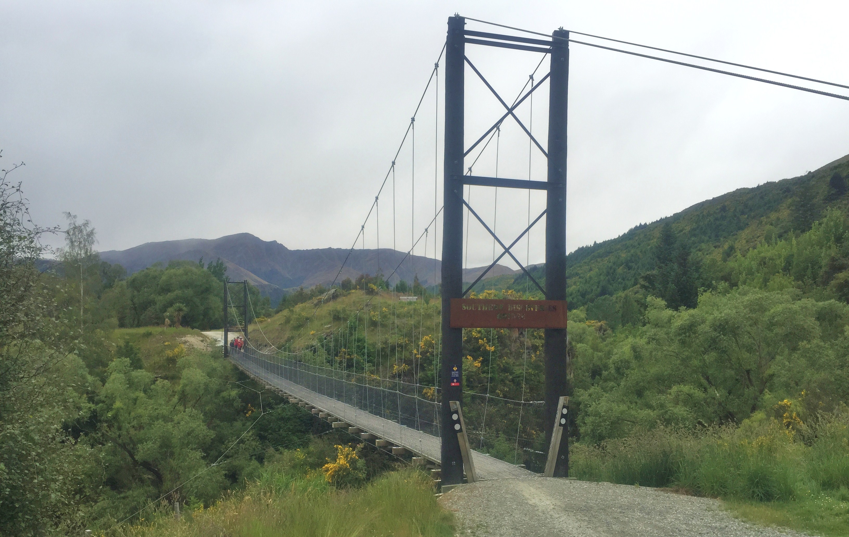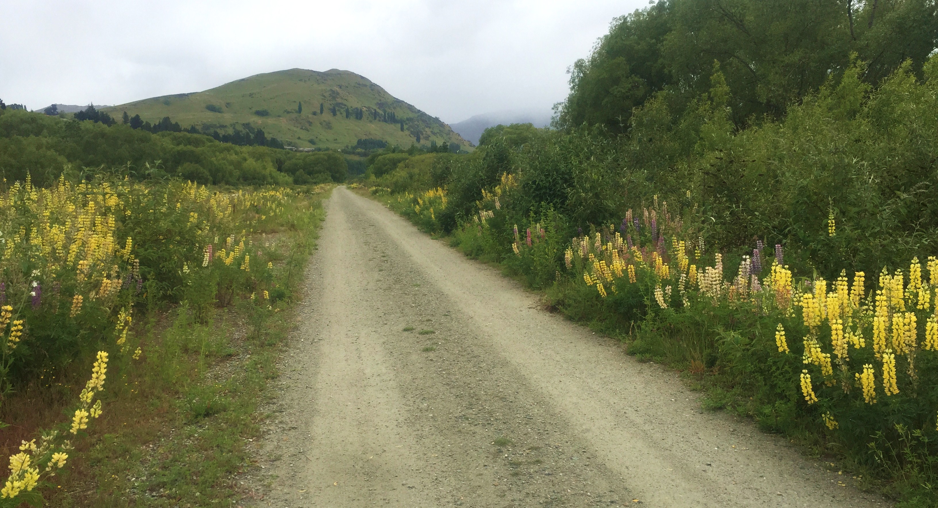 Assim segui até Arrowtown, por uma trilha chamada Queenstown trail, de terra batida com pedrisco passando por lugares remotos, beirava rio, cruzava pontes, sempre no meio de campos, nem estradas se via. O tempo não estava dos melhores, mas também nem dos piores; às vezes chovia, as vezes abria.