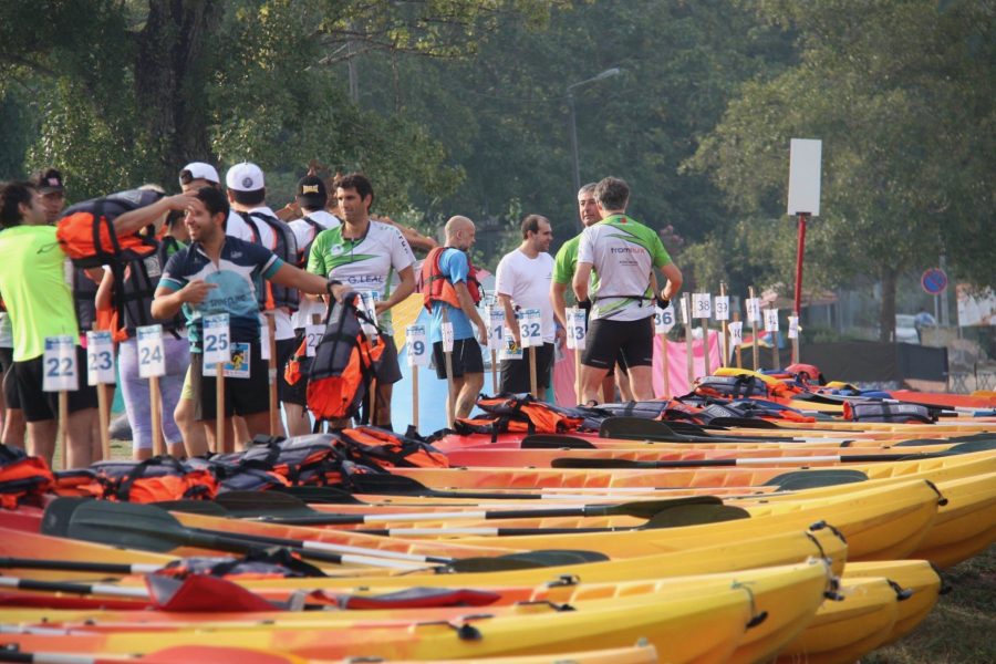 Sabíamos que pelo avanço deles, na água não conseguiríamos vencê-los. Seguimos remando forte na frente de outros 38 caiaques.