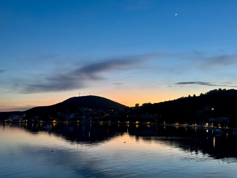 Que visual incrível! A medida que a gente se afastava da ilha víamos a pequena cidade de Korcula de um ângulo muito bonito.