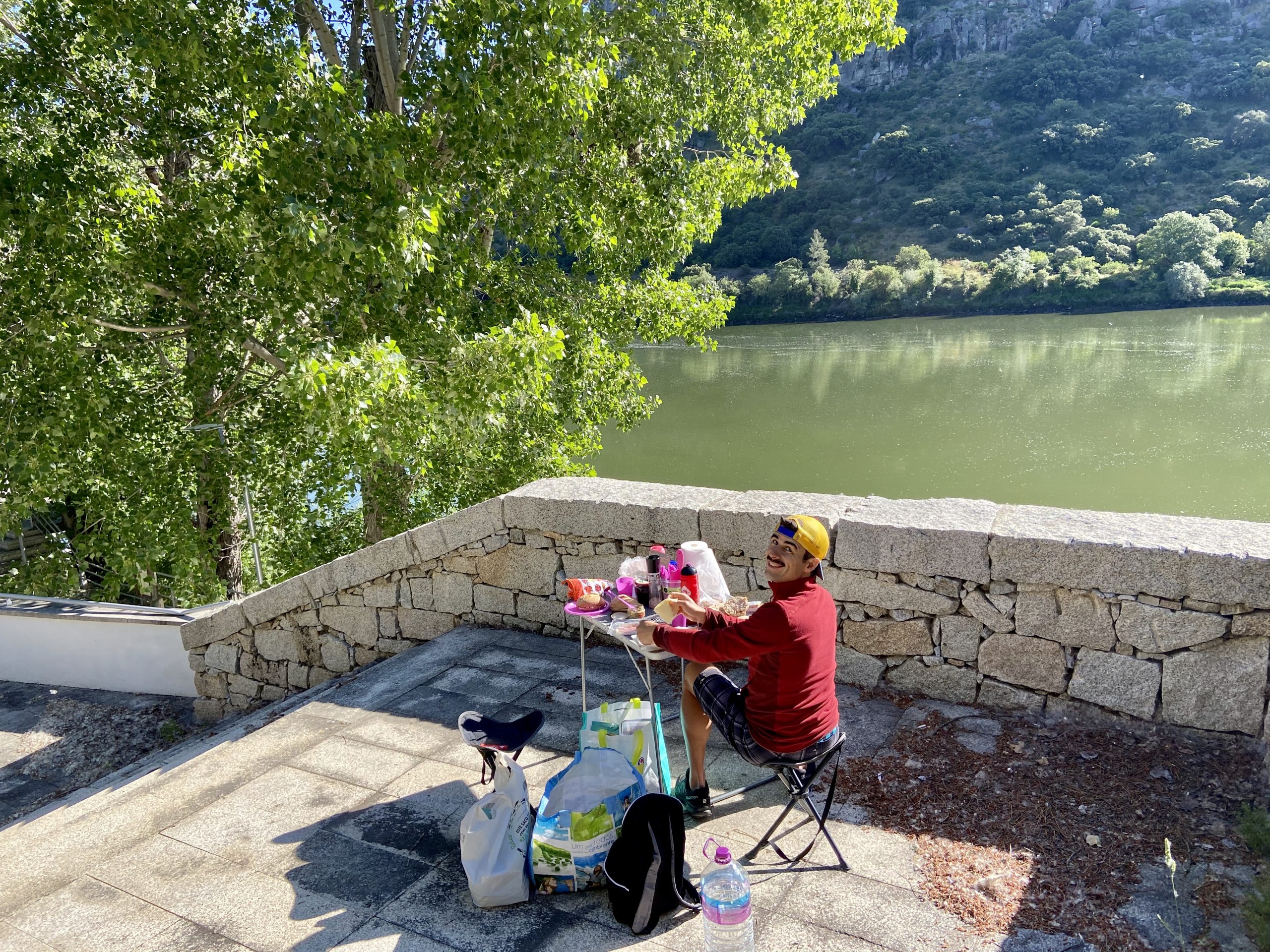 Com acesso a agua, na única parte navegável do Douro internacional, mas que pelas condições atuais esta sem cruzeiro, sem caiaques sem ninguém; o Douro Selvagem que buscávamos.