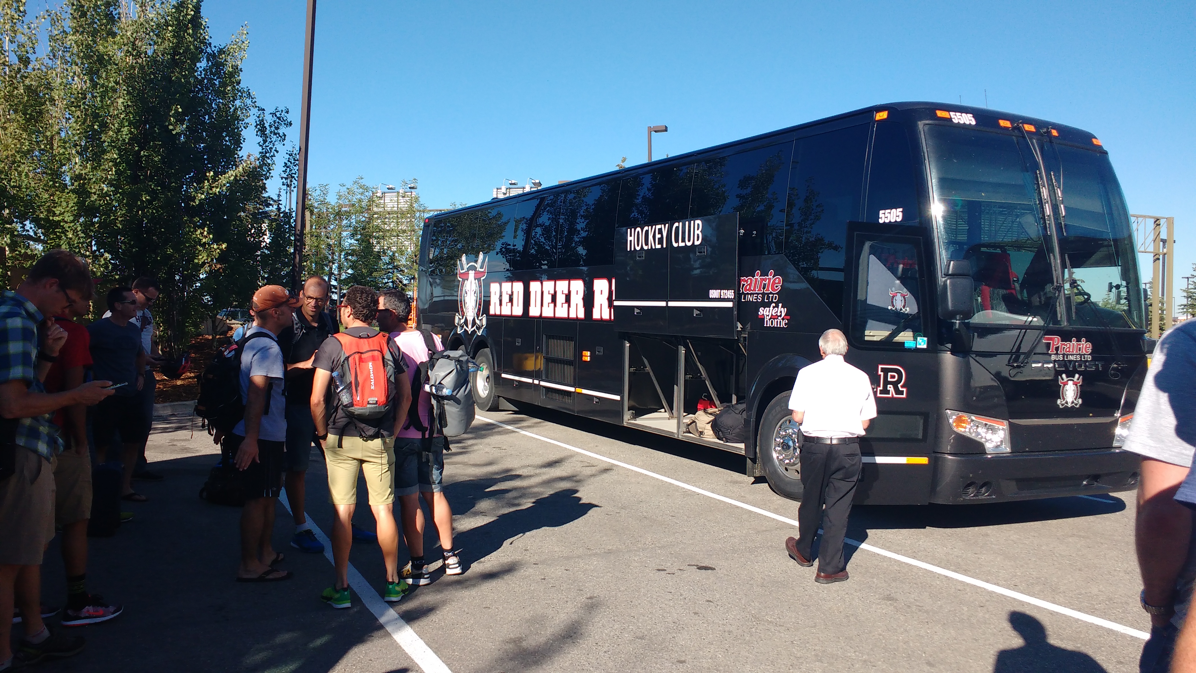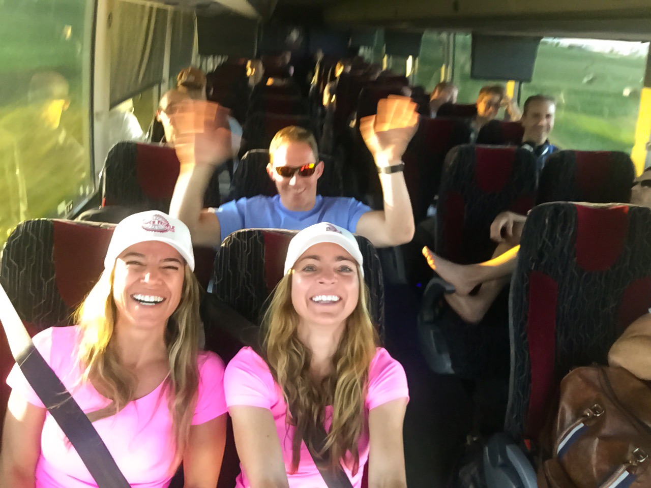Prontas para pegar o ônibus para Fernie, o primeiro destino da prova. No pacote da competição é possível comprar o transporte assegurando a locomoção para as largadas e hotéis (essa é uma prova que todos ficam mais acomodados, não tem barracas.).