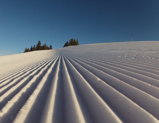 O final de tarde traz um frio agressivo consigo. Nessa hora os ski lifts já não funcionam mais e não tem ninguém na montanha. Aquele paraíso era todo meu! Apenas uma vez cruzei com a maquina que fica “afofando” as pistas para o dia seguinte. Dava até dó pisar na neve.