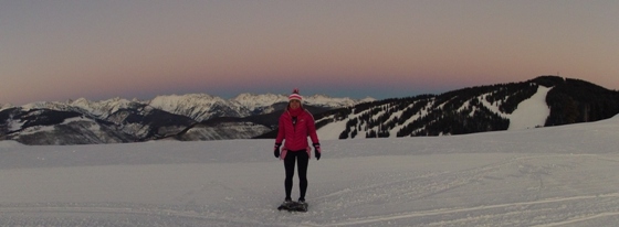 Depois de uma manhã tomando chão de snowboard, tava muito quebrada para continuar na mesma modalidade. Eu tinha mesmo era que correr, afinal tem menos de dois meses para a maratona de Rotterdam, mas desperdiçar o último dia de neve e sol? Nem pensar! Snowshoe…Yuhuuu!