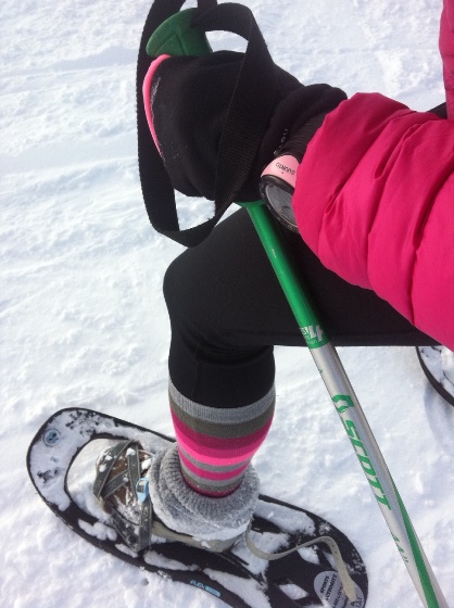 Snowshoe parece uma raquete. É largo para garantir a