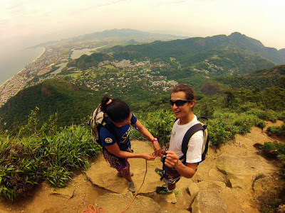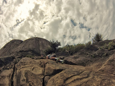 A descida com emoção teve um rapel delicioso no paredão da escalada. Adrenalina para uma Segunda feira fora da rotina.