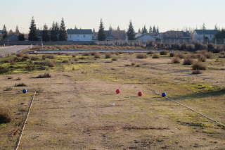 O nosso jogo de Bocha trouxe outro projeto agregado: a implantação do campo. No condomínio em que eles moram existe um terreno plano enorme sem casas; “Perfeito!”